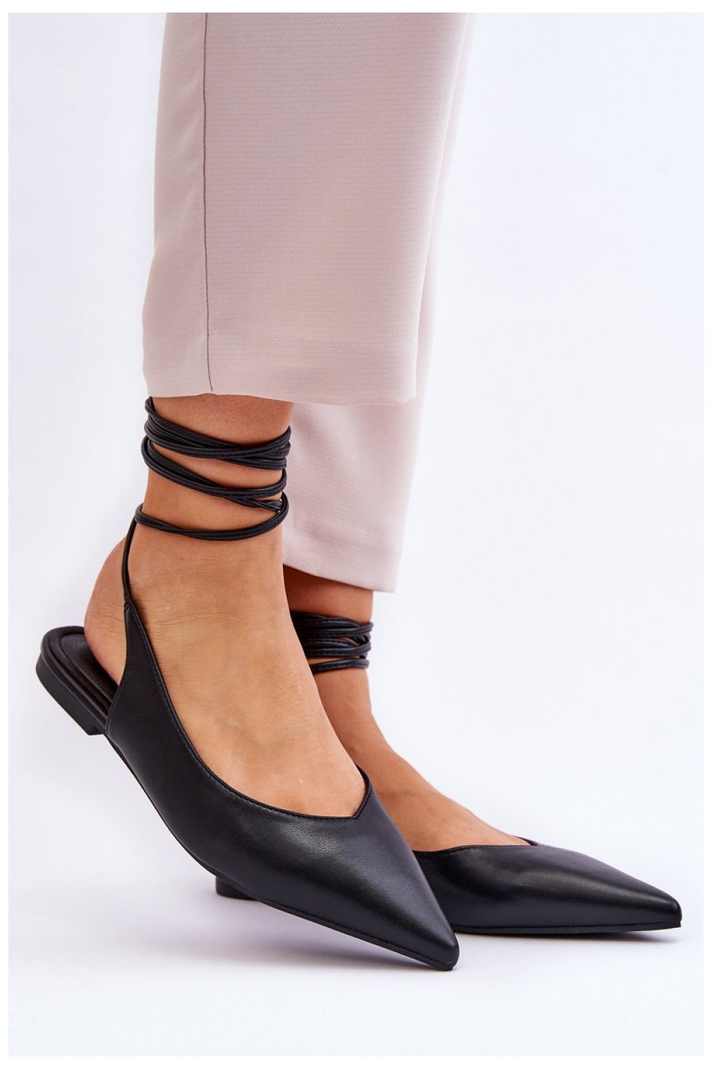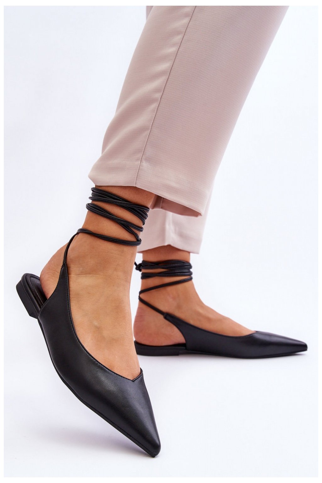 Tyto jedinečné baleríny s otevřenou patou a špičatou špičkou jsou vyrobeny z ekologické kůže. Mají vázání umožňující správné přizpůsobení velikosti nohy. Měkká stélka z ekokůže zajistí pohodlí při používání. Baleríny mají plochý podpatek a protiskluzovou gumovou podrážku. Skvělý model pro teplejší dny!