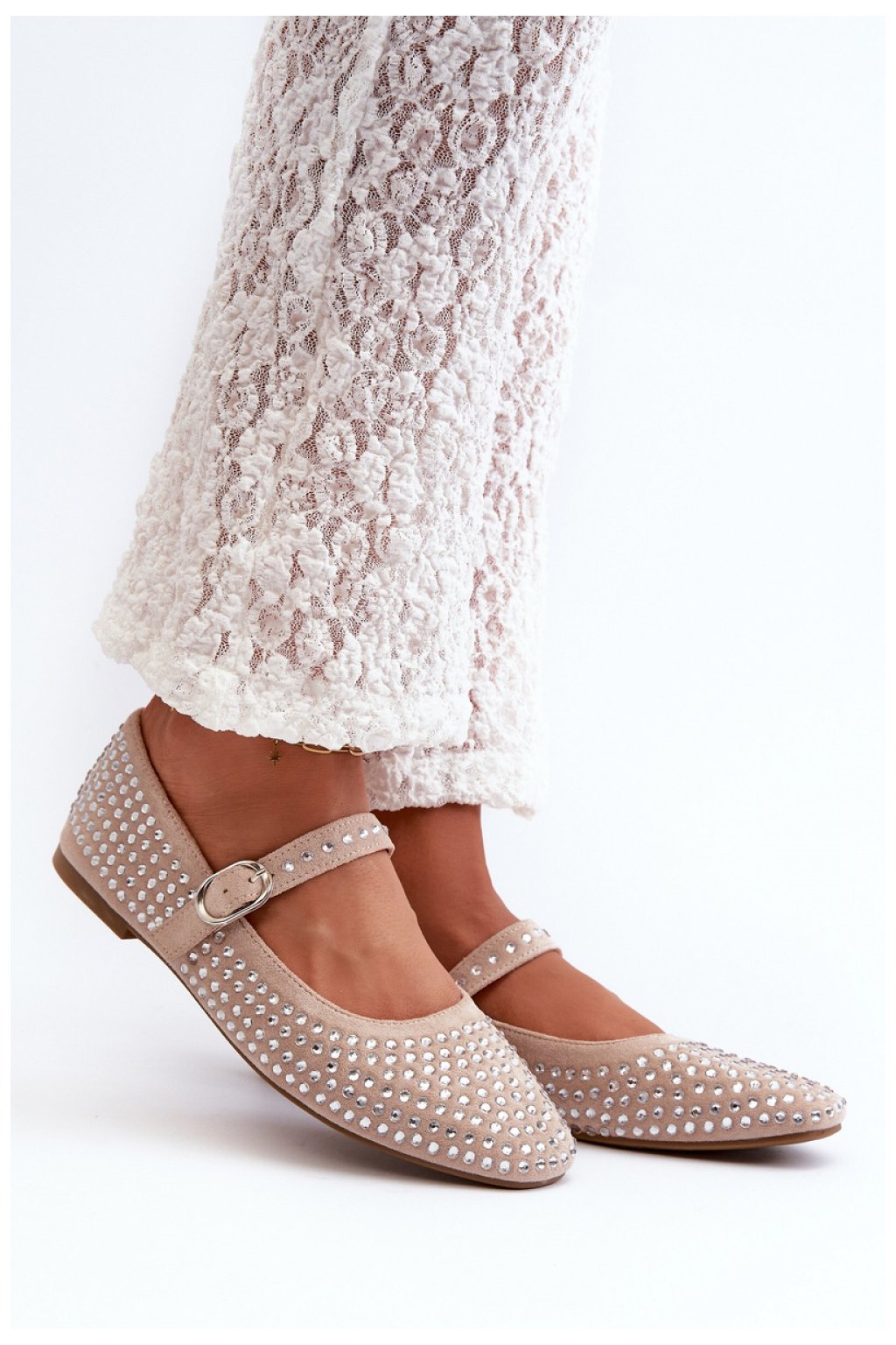 Baleríny z eko-semiše zdobené mnoha kamínky. Zapínají se na nastavitelný pásek, který zajišťuje stabilitu a pohodlí při nošení. Tyto baleríny jsou ideální volbou pro každou příležitost. Jistě dodají šmrnc každému outfitu.