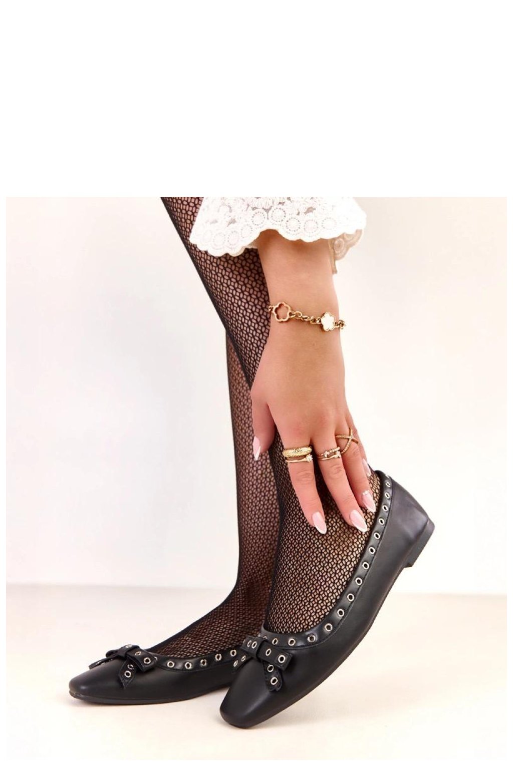 Elegantní a roztomilé baleríny, které spojují klasický střih s jemnými dekorativními detaily. Vyrobené z vysoce kvalitní ekologické kůže, působí stylově a jsou neuvěřitelně pohodlné na nošení každý den. Model se vyznačuje čtvercovým špičatým nosem, ozdobnými očky a jemnou mašlí na přední části, které dávají balerínám dívčí šarm a jedinečný charakter. Plochý podpatek zajišťuje pohodlí během chůze a kůží vložka navíc zvyšuje pohodlí nošení. Jsou to klasické, nízké baleríny, které se skvěle hodí do každodenních i elegantních stylizací, a jsou praktickou a módní volbou pro každou ženu.