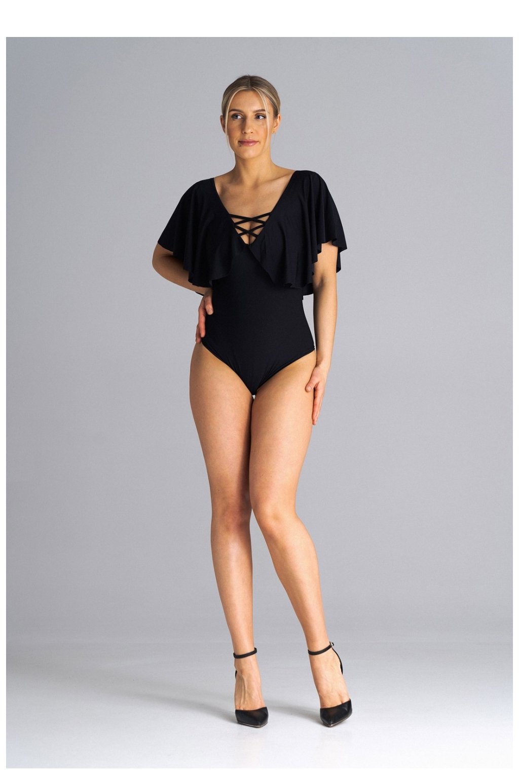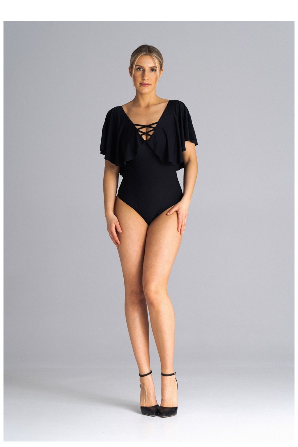 Body s výstřihem do V a volánkem na ramenou. Výrazné pruhy všité do výstřihu. Ideální pro mnoho stylizací.