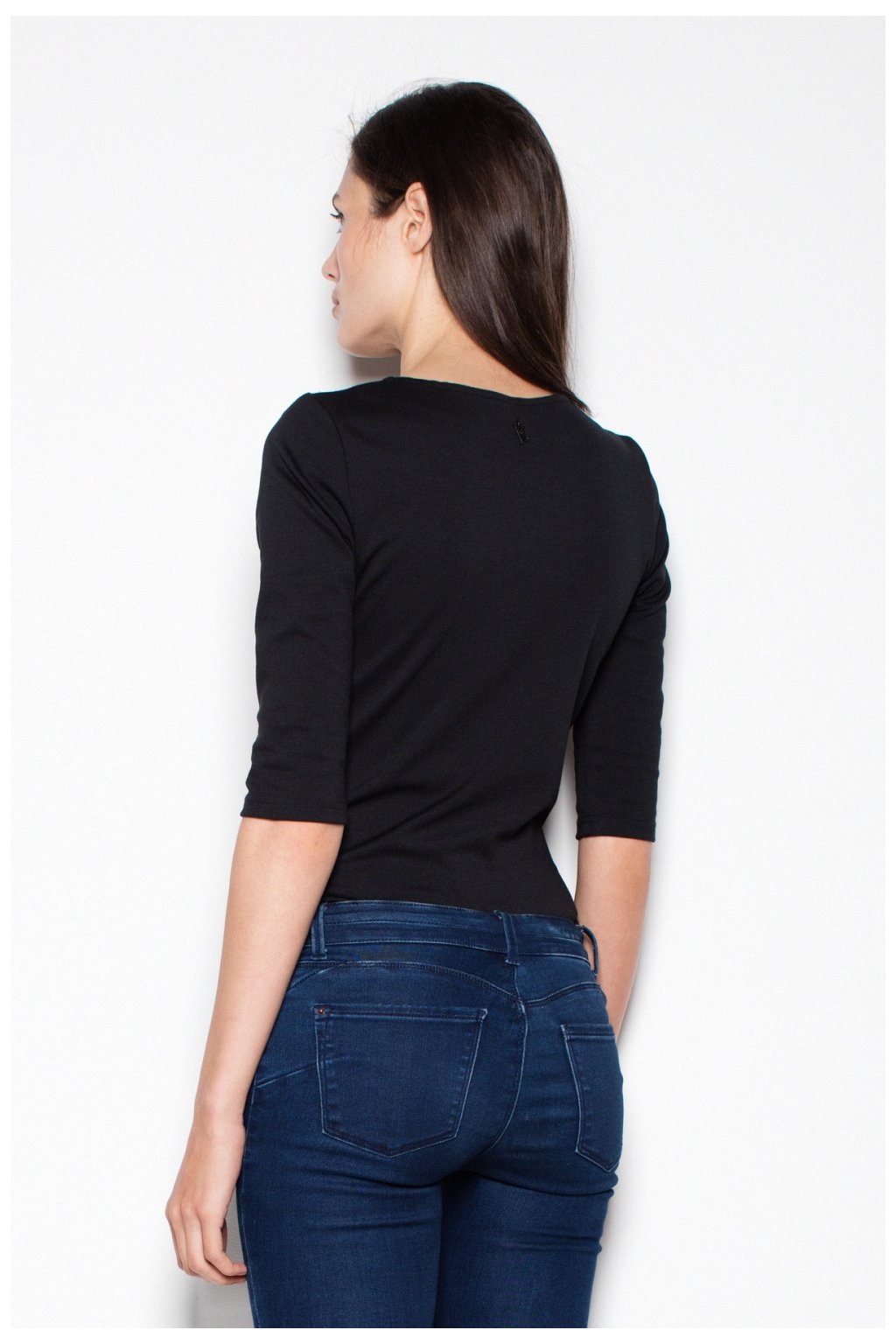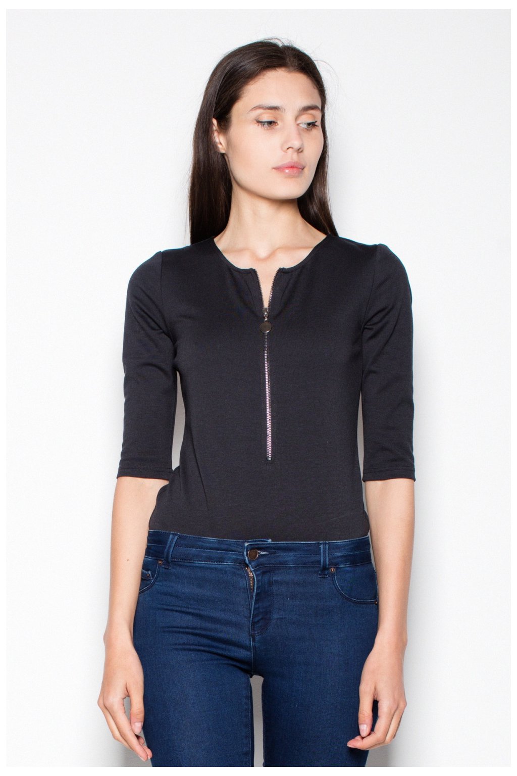 Přiléhavé, ženské body s 3/4 rukávy. Zapíná se na ozdobný zip. Ideální k džínám.