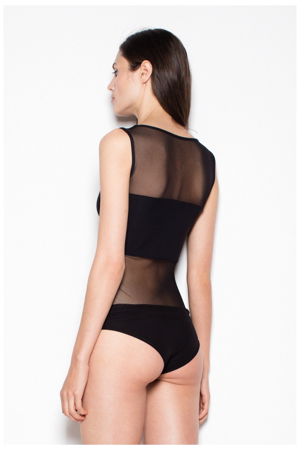 Průhledné body bez ramínek s půlkulatým výstřihem. Velmi ženské, hodí se k mnoha outfitům.
