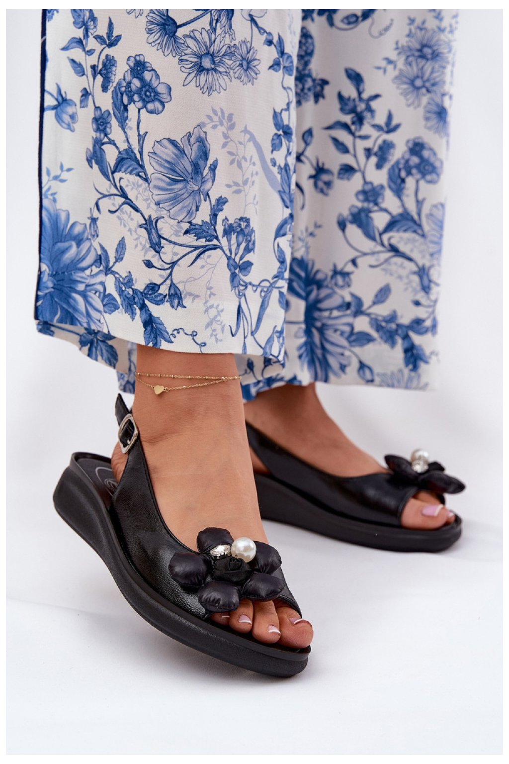 Dámské sandály značky Jezzi. Vyrobené z vysoce kvalitní ekokůže. Umístěné na jemném klínku, poskytují stabilitu a pohodlí během nošení. Tento model je vyznačen materiálovým, ozdobným květem, který dodává jedinečný šarm. Zapínají se na nastavitelný popruh se sponou, který zaručuje ideální přizpůsobení noze. Tento elegantní střih skvěle doplní mnoho stylizací s šaty a kalhotami. Určitě byste je měla mít!