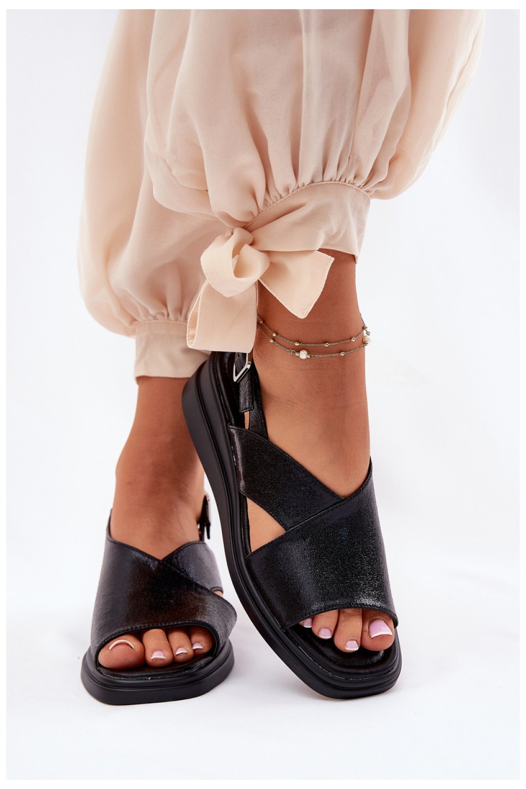 Dámské sandály od značky Jezzi vyrobené z ekokože jsou skvělou volbou na teplé dny. Umístěné na platformě poskytují stabilitu a pohodlí po celý den. Zapínají se na sponu s nastavitelným páskem, což umožňuje ideální přizpůsobení noze. Tyto stylové sandály budou skvělou volbou pro různé letní outfity, skvěle ladí jak s šaty, sukněmi, tak i kalhotami.