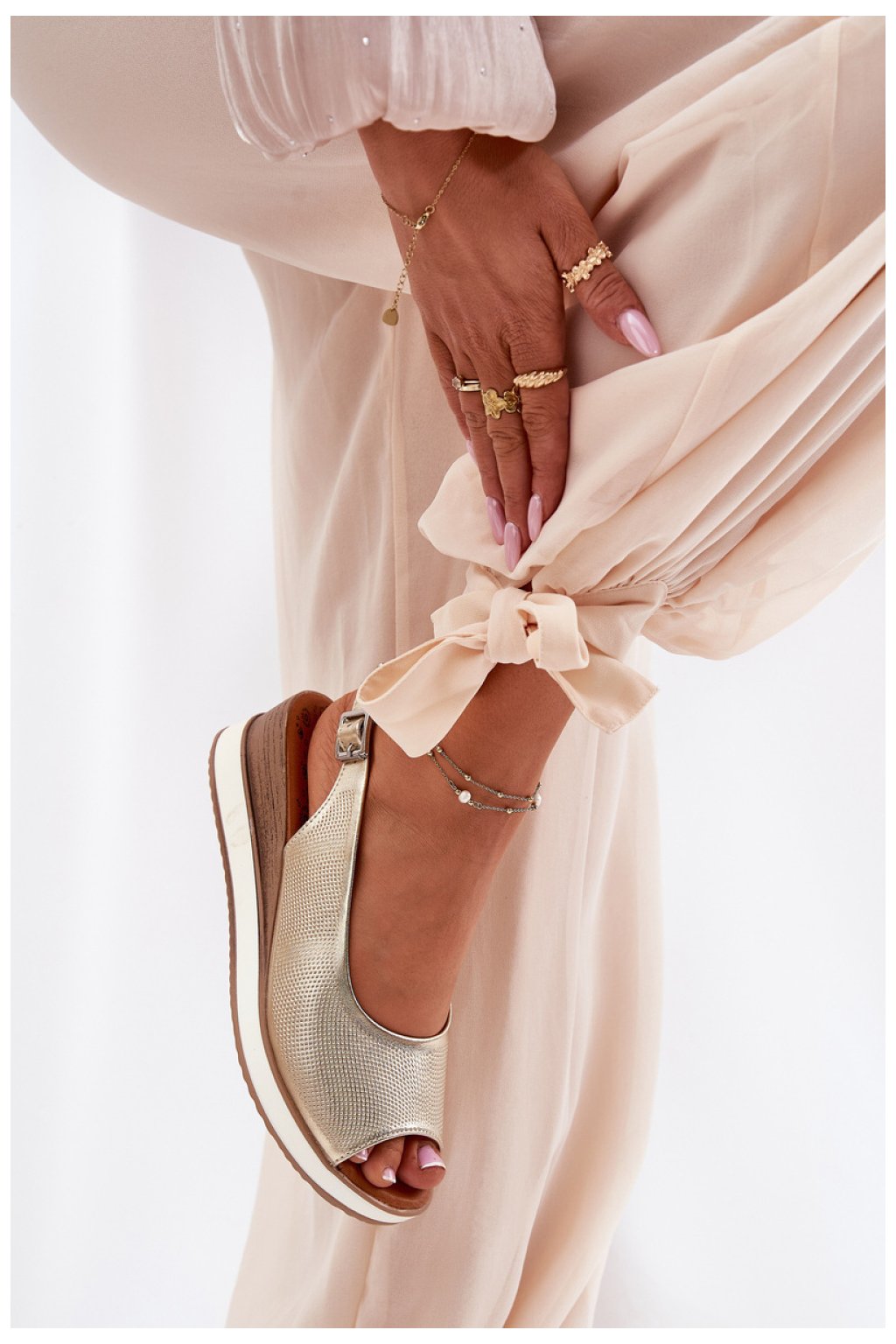 Dámské sandály vyrobené z vysoce kvalitní přírodní kůže, usazené na platformě, jsou spojení elegance a pohodlí. Zapínané na sponu s nastavitelným popruhem umožňují dokonalé přizpůsobení noze. Kožená stélka zajišťuje pohodlí po celý den a dbá na správnou amortizaci. Tyto sandály skvěle doplní stylizace s šaty, sukněmi a látkovými kalhotami!