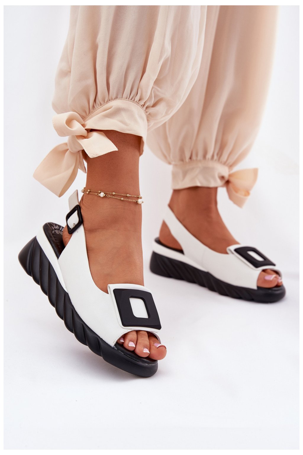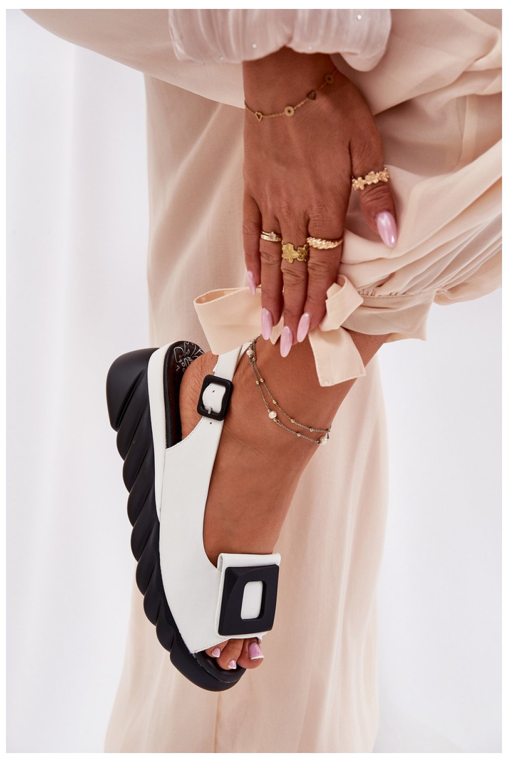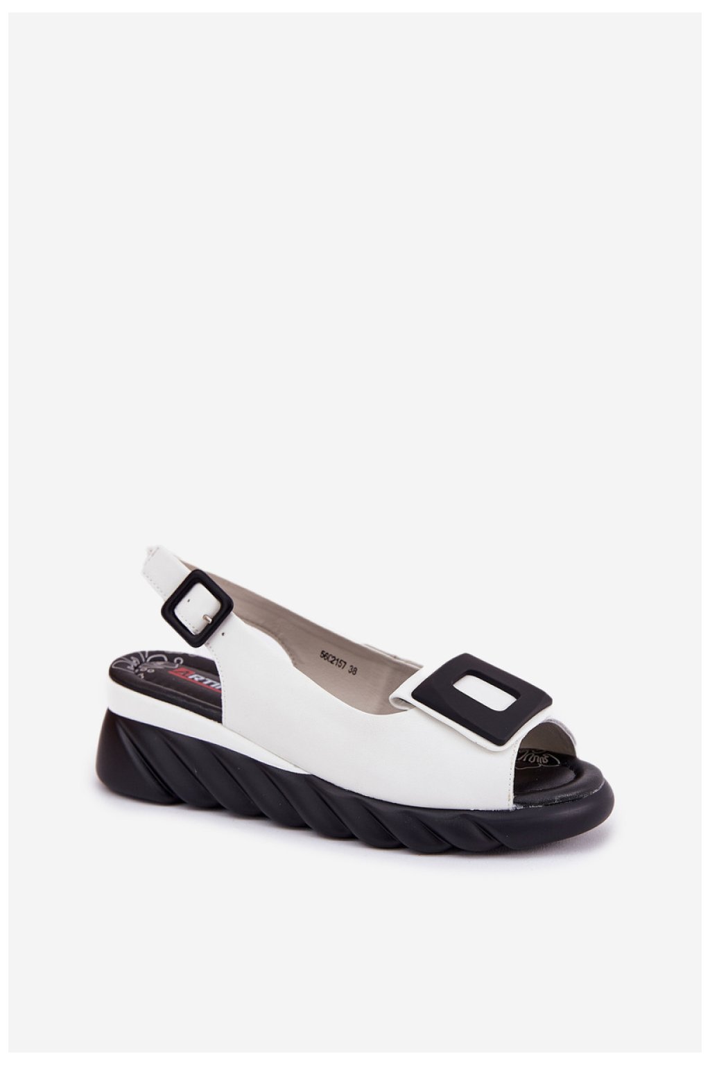 Dámské sandály z přírodní kůže, osazené na klínu, jsou elegantní volbou na teplé dny. Model se vyznačuje ozdobou v přední části, která jim dodává jedinečný charakter. Zapínají se na sponu s nastavitelným páskem, což zajišťuje ideální přizpůsobení k noze. Dále měkká stélka zaručuje pohodlí po celý den. Tyto sandály budou vynikající volbou pro letní stylizace, spojující eleganci s pohodlím.