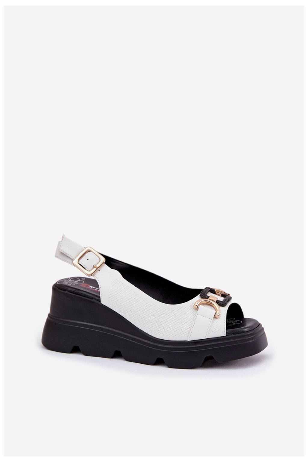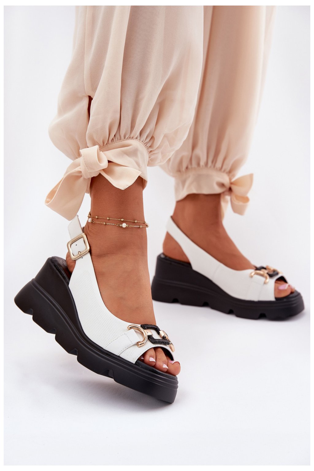 Dámské sandály vyrobené z vysoce kvalitní přírodní kůže jsou kombinací elegance a pohodlí. Usazené na platformě a klínu, zajišťují pohodlí a stabilitu po celý den. Vpředu se nachází jemný ozdobný prvek, který jim dodává mimořádný charakter. Měkká stélka zajišťuje pohodlné nošení a zapínání na přezku s nastavitelným páskem umožňuje dokonalé přizpůsobení k noze. Tyto sandály jsou vynikající volbou do letních stylizací, ideální na různé příležitosti.