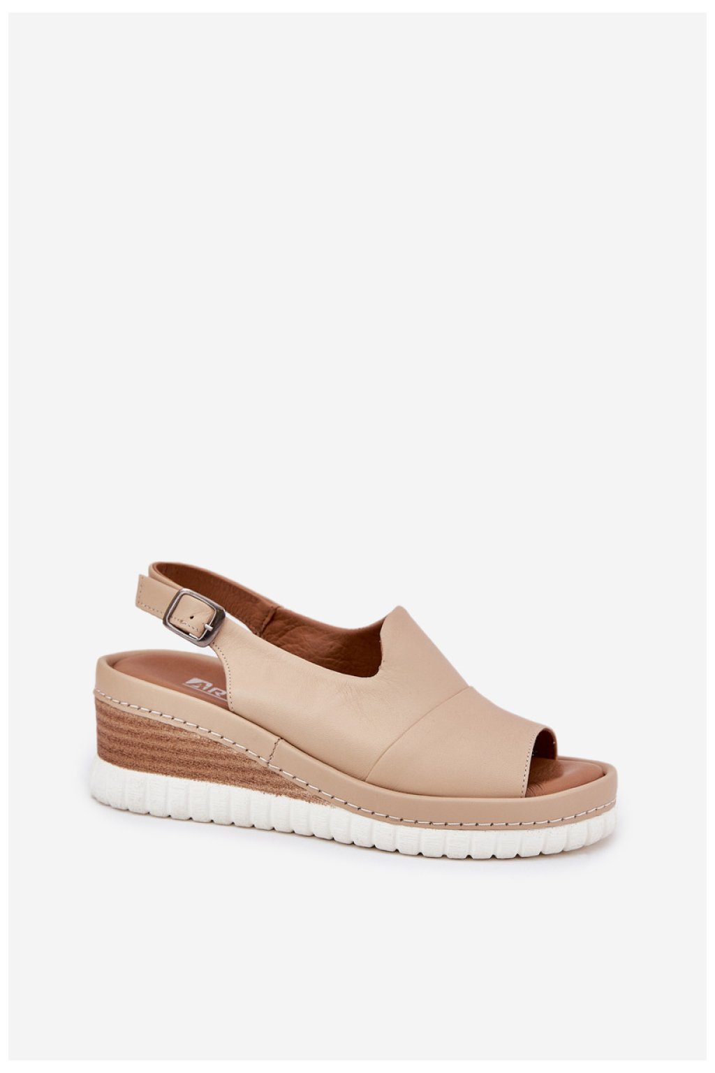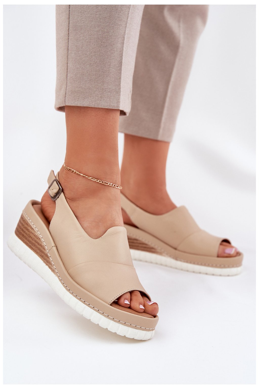 Dámské sandály z přírodní kůže jsou elegantní volbou na teplé dny. Umístěné na klínu poskytují stabilitu a pohodlí po celý den. Spona s nastavitelným popruhem umožňuje dokonalé přizpůsobení noze. Měkká stélka zaručuje pohodlí a klasický střih dělá tyto sandály skvělou volbou k šatům a materiálovým kalhotám, dodávají stylizaci lehkost a eleganci.