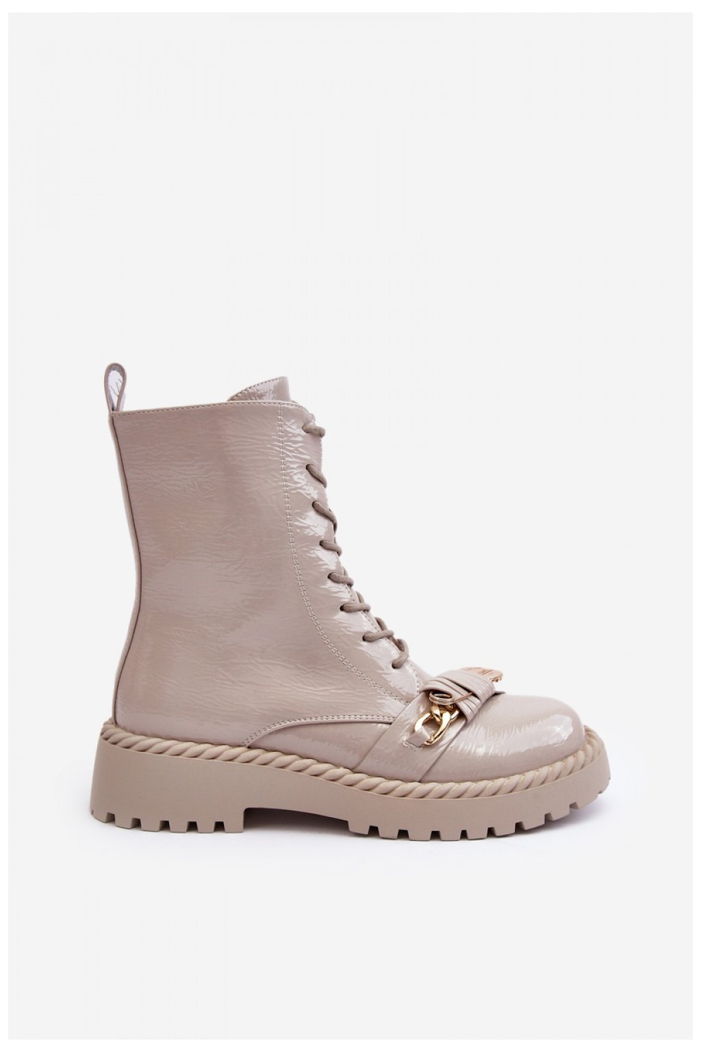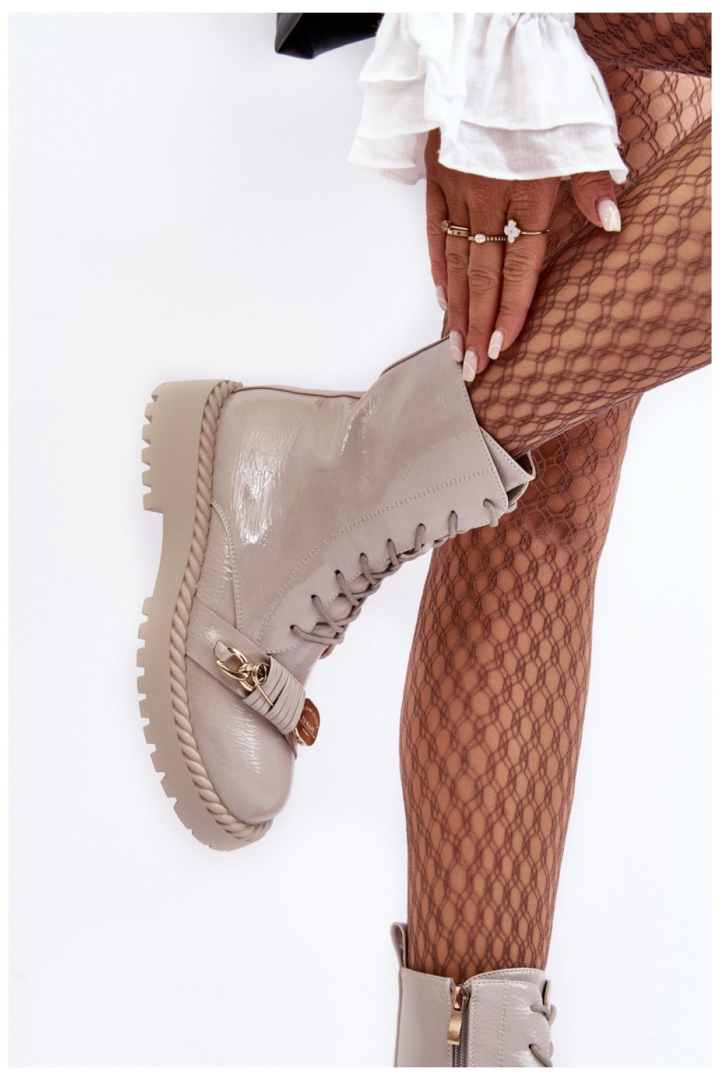 Dámské boty ve stylu bagger byly vyrobeny z kvalitní ekologické kůže. Mají zip na boku svršku pro snadné nazouvání bot. Boty jsou usazeny na plochém podpatku a jemné platformě s drážkami. Uvnitř jsou vybaveny zateplením z deky na boty. Zlaté plastické ornamenty na přední straně. Tento model jistě využijete v mnoha outfitech!