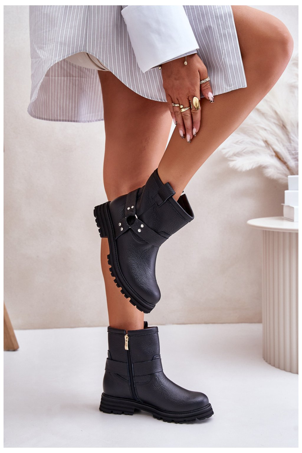 Tyto boty jsou vyrobeny z přírodní kůže a jsou ideální volbou pro každou příležitost. Jsou na plochém podpatku a poskytují pohodlí a stabilitu při chůzi. Zaoblený nos dodává botám jemný charakter. Model se zapíná na zip, díky čemuž se snadno nazouvá. Svršek zdobí výrazná kombinace proužků, které dodávají stylový nádech. Tyto boty jsou ideální pro každodenní stylizaci a kombinují eleganci s pohodlím.