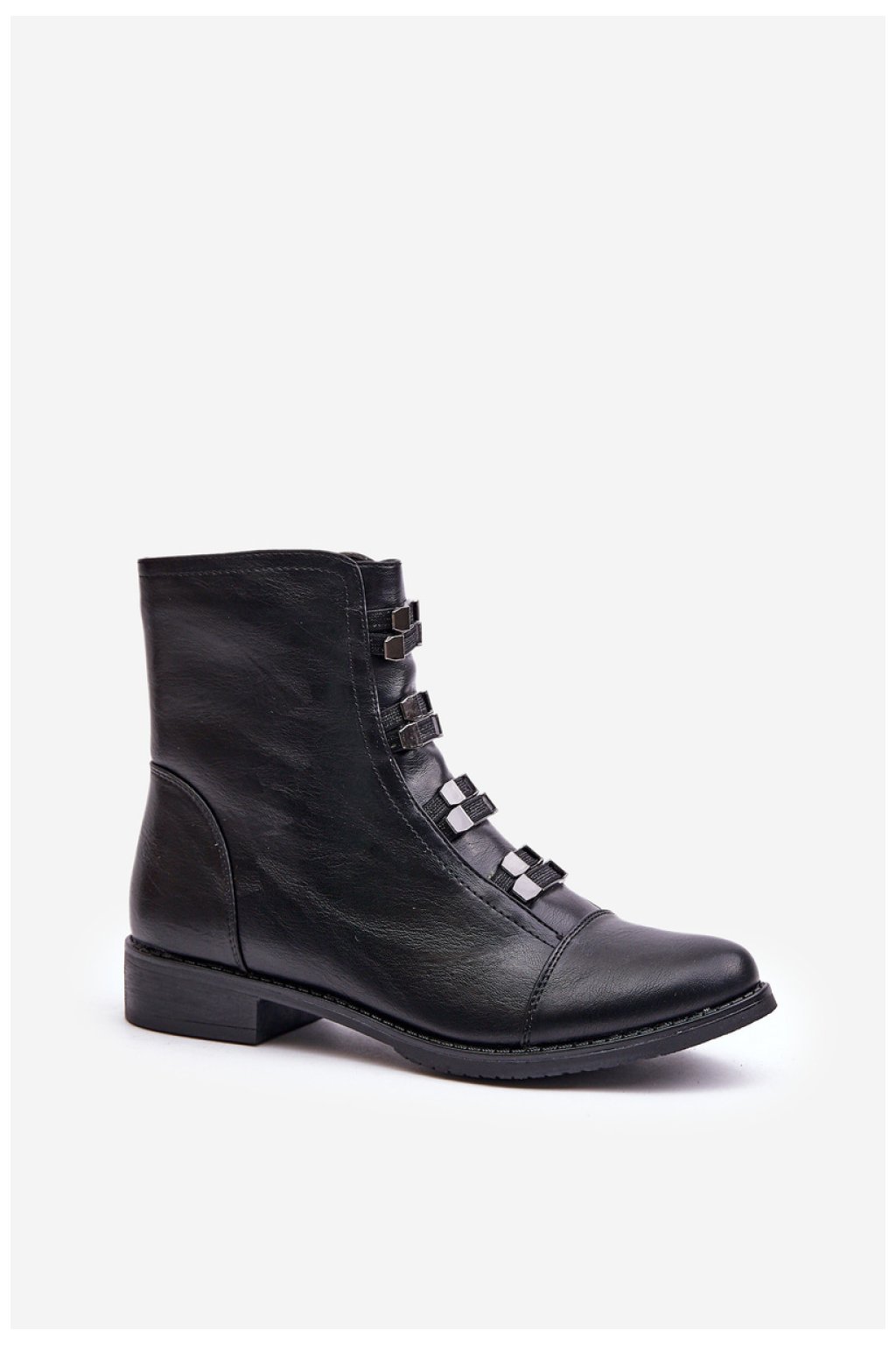 Boty z ekologické kůže značky Jezzi, které kombinují styl a pohodlí. Jsou na plochém podpatku a se zaoblenými špičkami a nabízejí pohodlí pro každodenní nošení. Zapínají se na zip pro snadné nazouvání a vyzouvání. Tento model se vyznačuje ozdobnými gumičkami na přední straně. Vnitřní část je zateplená přikrývkou na boty. Tyto boty jsou skvělou volbou pro podzimní a zimní stylizaci.