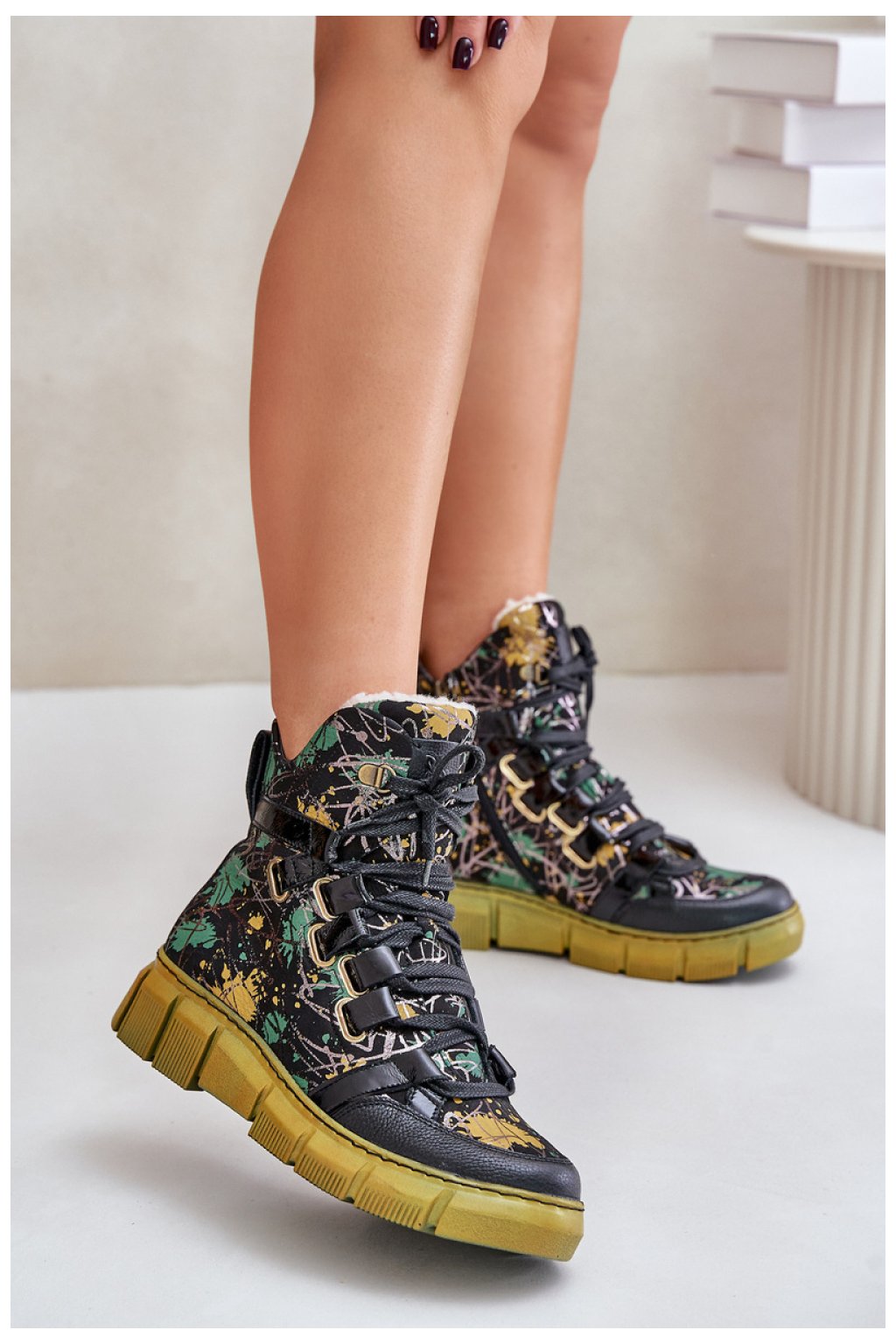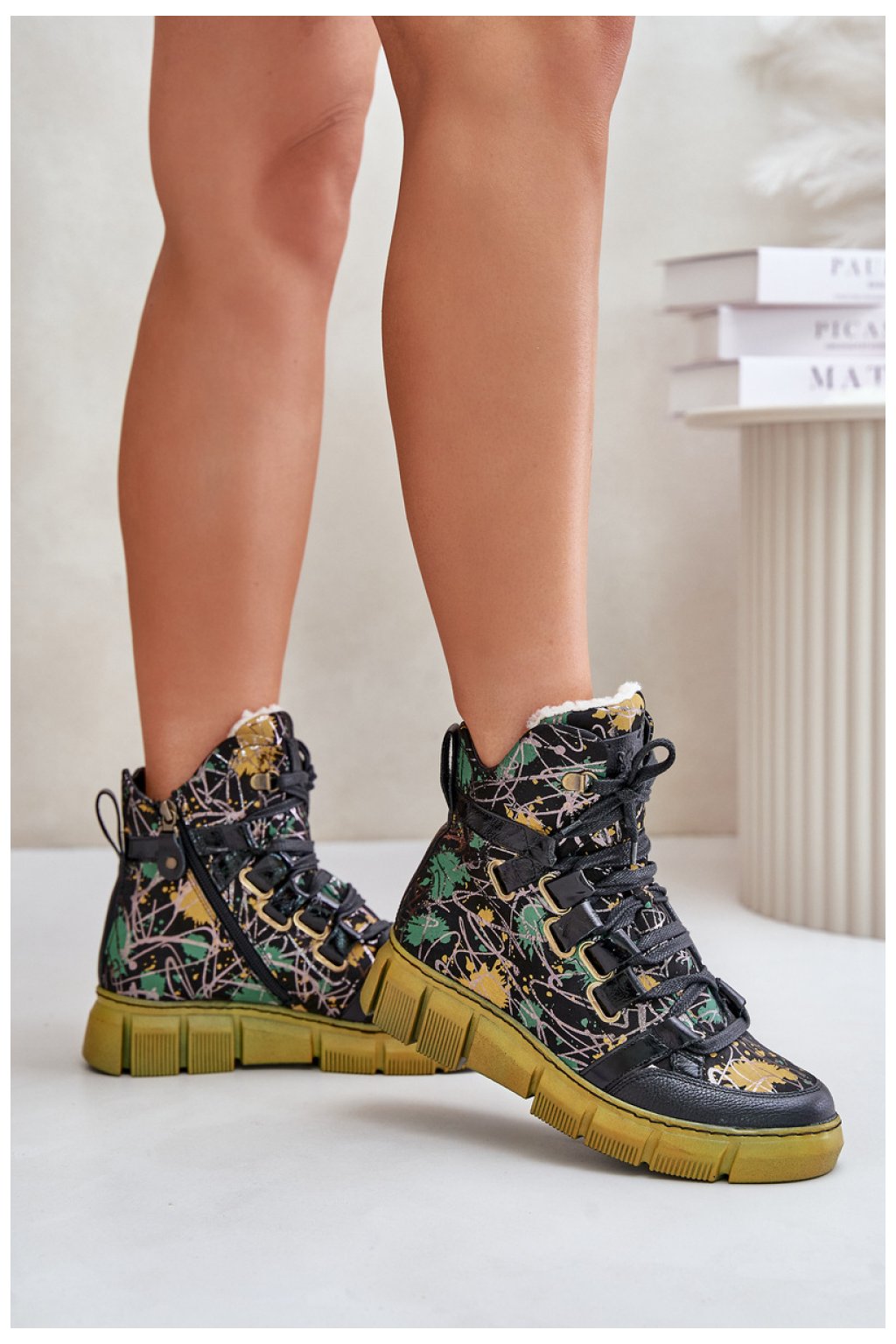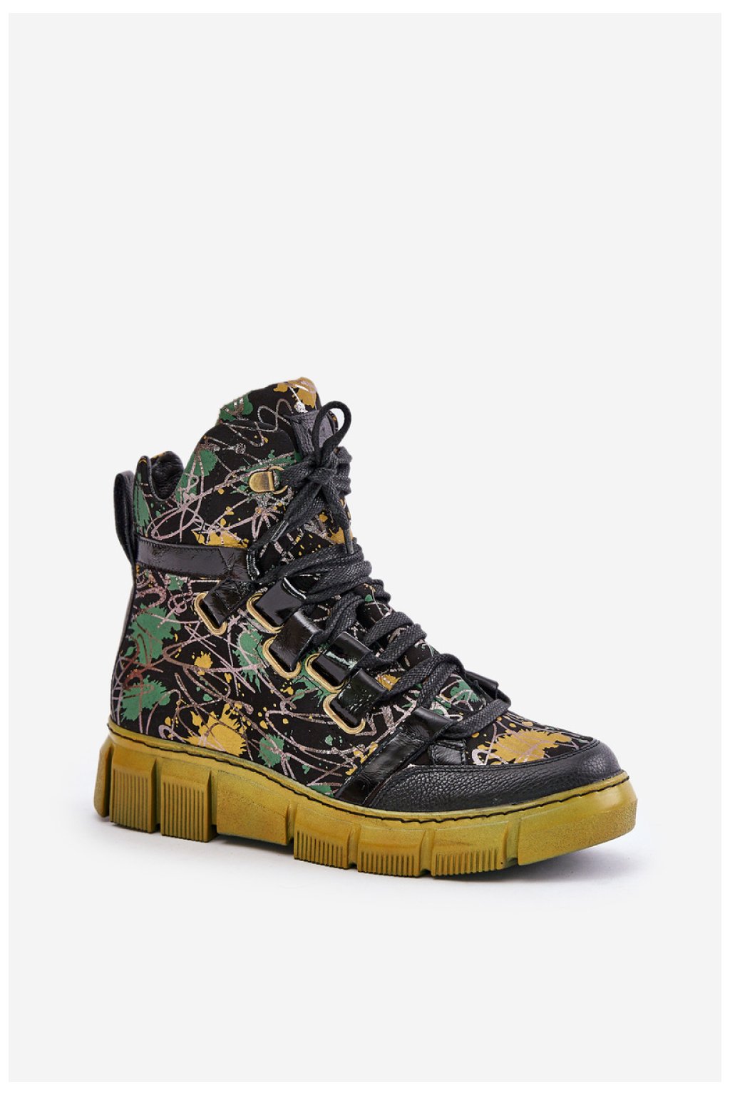 Dámské kotníčkové boty značky Maciejka jsou vyrobeny z nejvyšší kvalitní přírodní kůže. Tento model je umístěn na ploché podrážce a platformě. Boty se zapínají na zip po vnitřní straně svršku a navíc se šněrovají. Měkká vložka zajistí pohodlné nošení obuvi. Přední část boty je zpevněná.