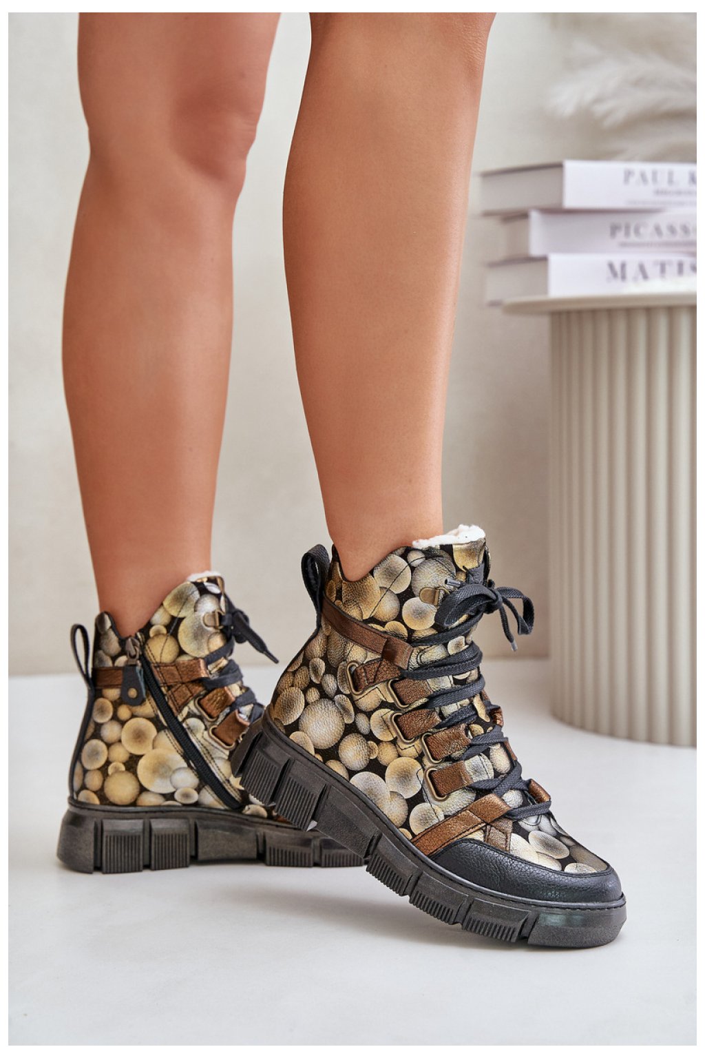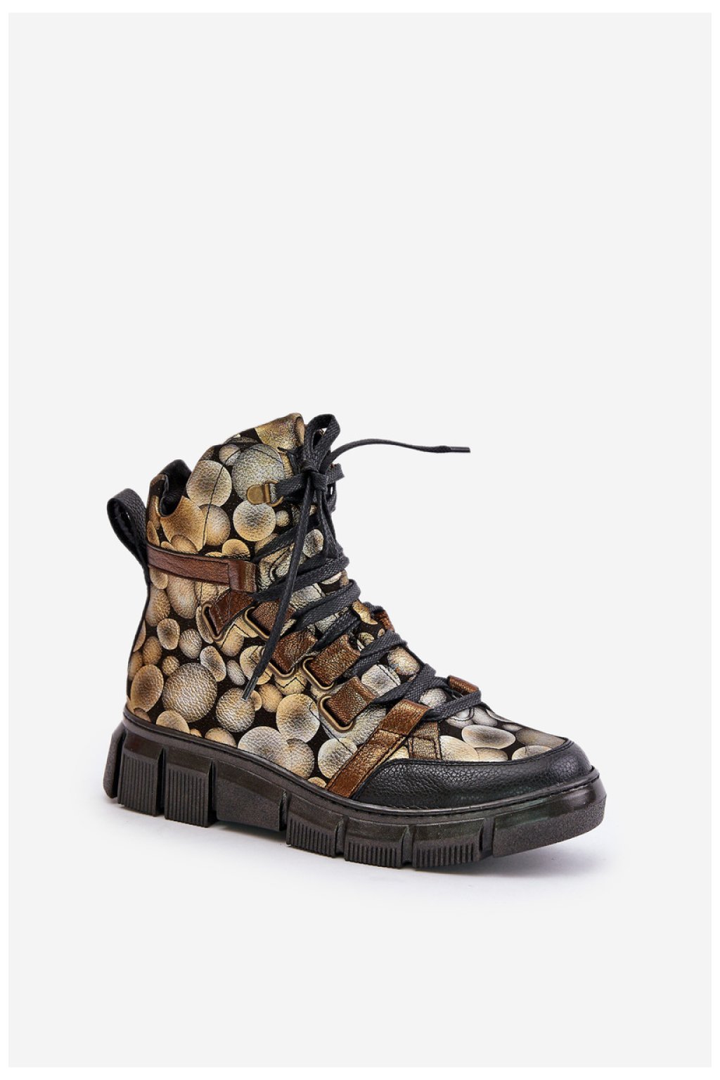 Dámské botky značky Maciejka jsou vyrobeny z nejkvalitnější přírodní kůže. Tento model je umístěn na ploché podrážce a platformě. Boty se zapínají na zip na vnitřní straně svršku a navíc se šněrování. Měkká stélka zajistí pohodlné nošení obuvi. Peta je zpevněná.