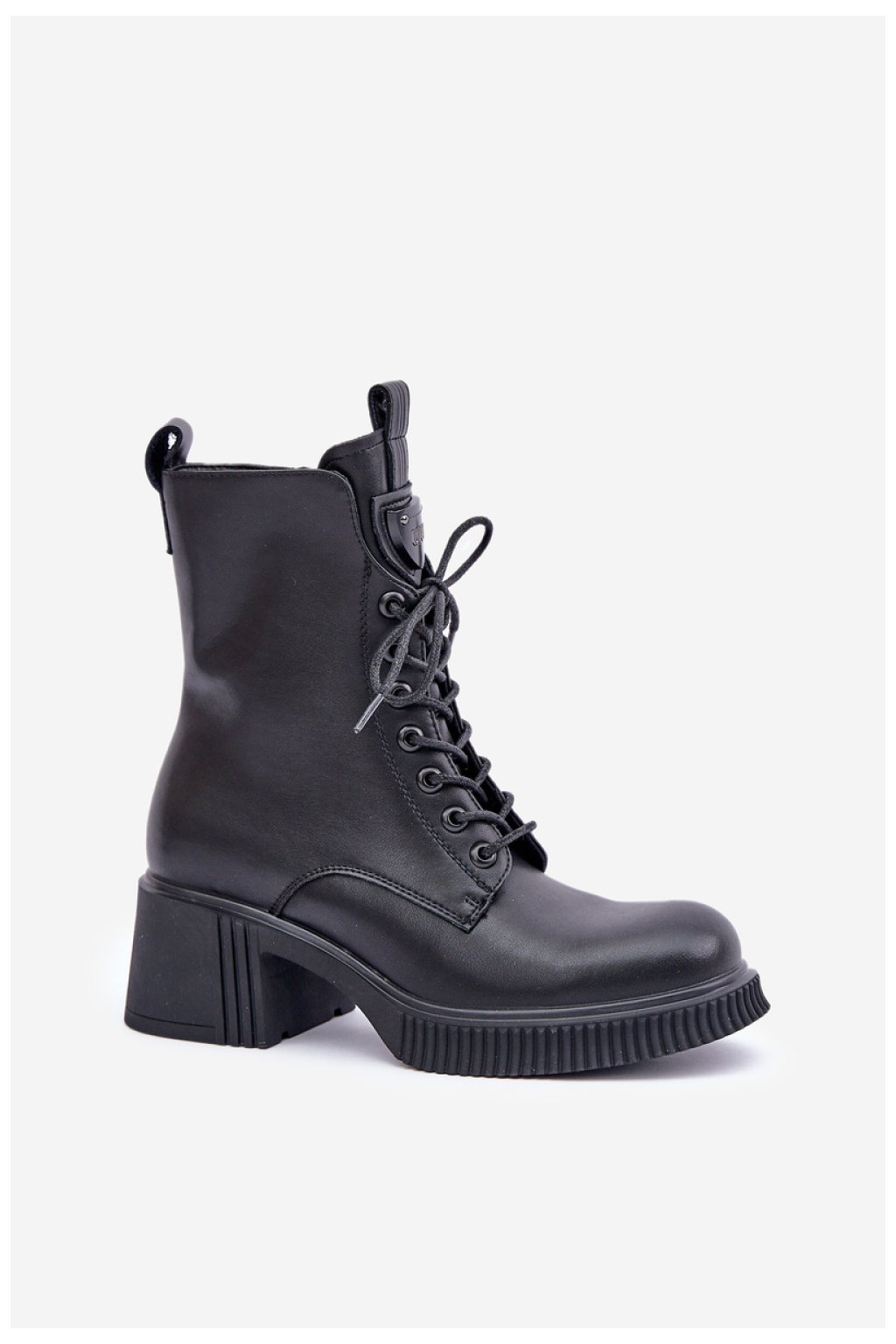 Dámské botky vyrobené z přírodní kůže. Umístěné na masivní, stabilní podpadku. Zakulacené špičky. Zapínají se na zip a navíc mají šněrování. Uvnitř jsou vyloženy příjemným dotekem obuvního kožichu. Rozhodně byste je měla mít ve své podzimně-zimní skříni!
