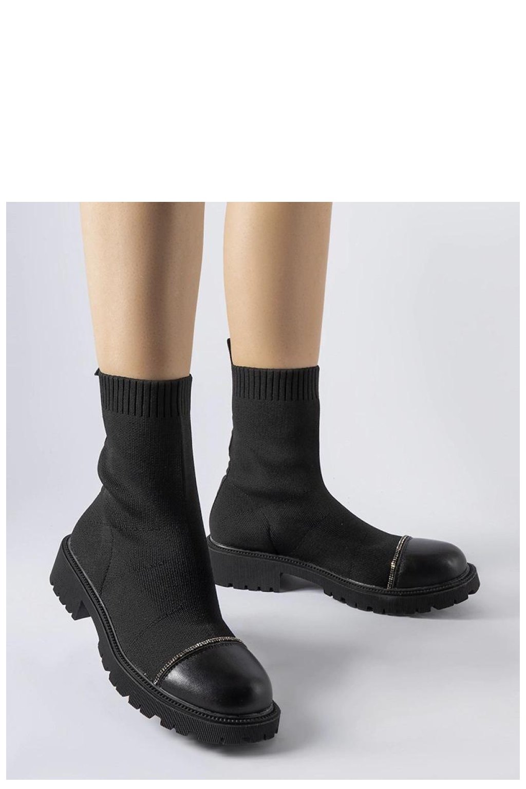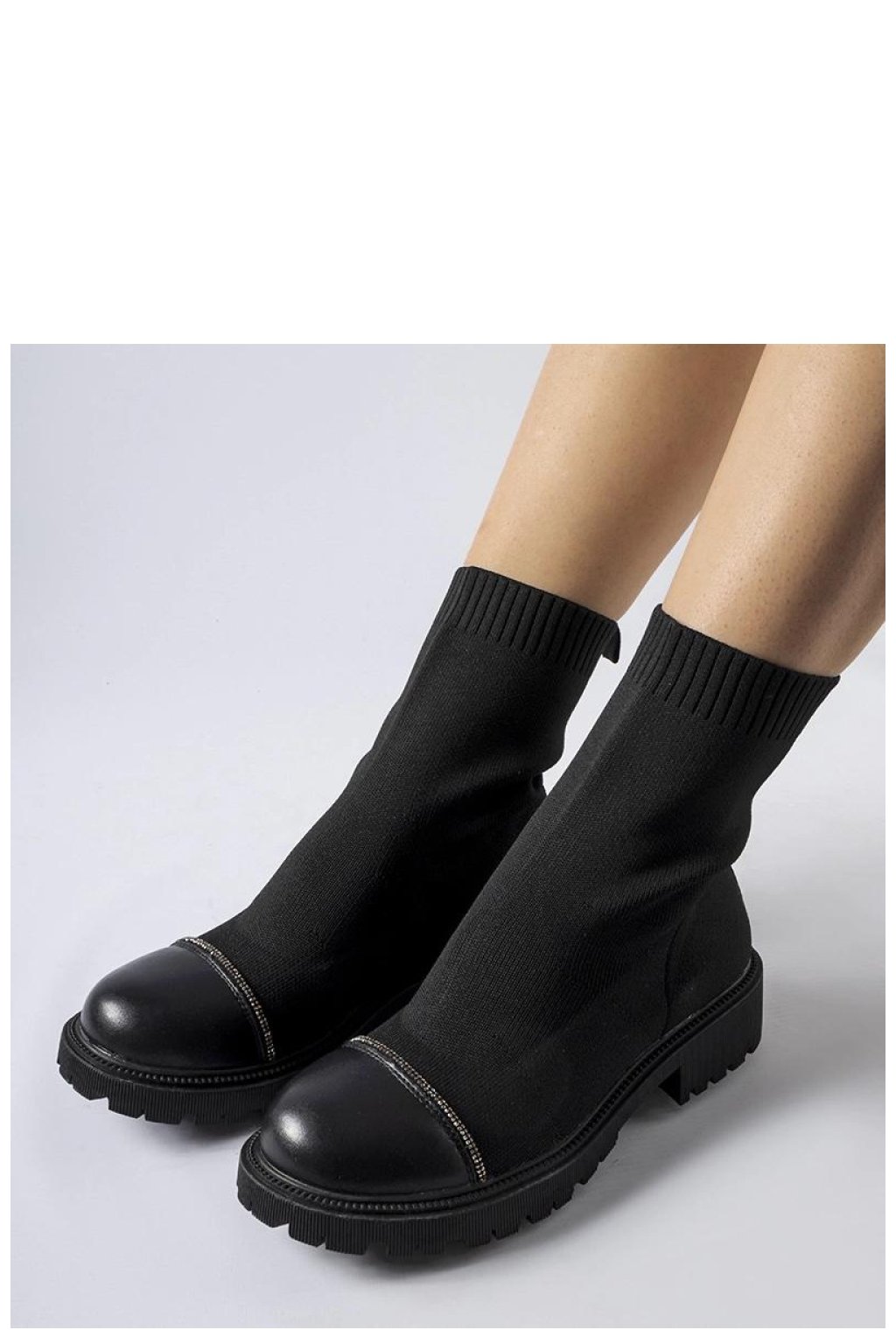 Černé punčochové botky s cirkonii Vail jsou ideální obuví jak do každodenního nošení, tak i na speciální příležitosti. Jejich elegantní střih za kotníkem a zapínání na zip je dělají pohodlnými a snadno se obouvají. Vyrobena z vysoce kvalitního materiálu, mají precizní švy, které zaručují jejich odolnost. Guma na podrážce zajistí dobrý grip na povrchu a cirkonie jim dodávají jemný lesk. Kulatý nos zajišťuje pohodlí a neomezí pohyb nohy. Botky Vail spojují styl, eleganci a pohodlí, což je skvělá volba na podzim a na jaře.