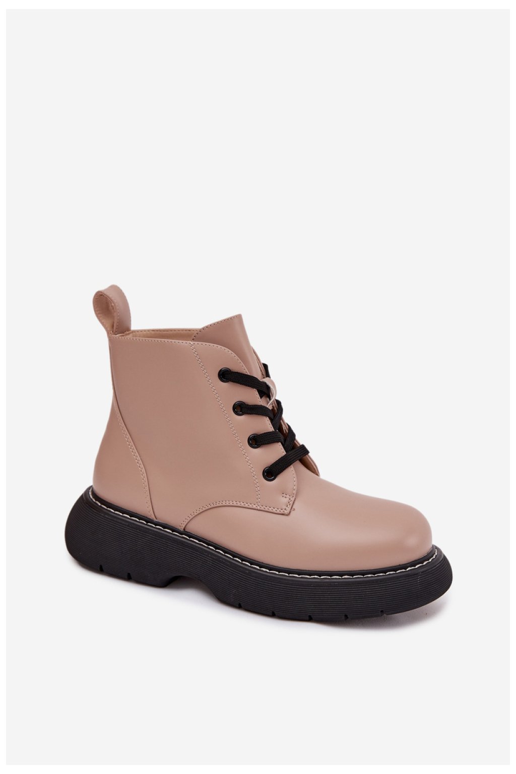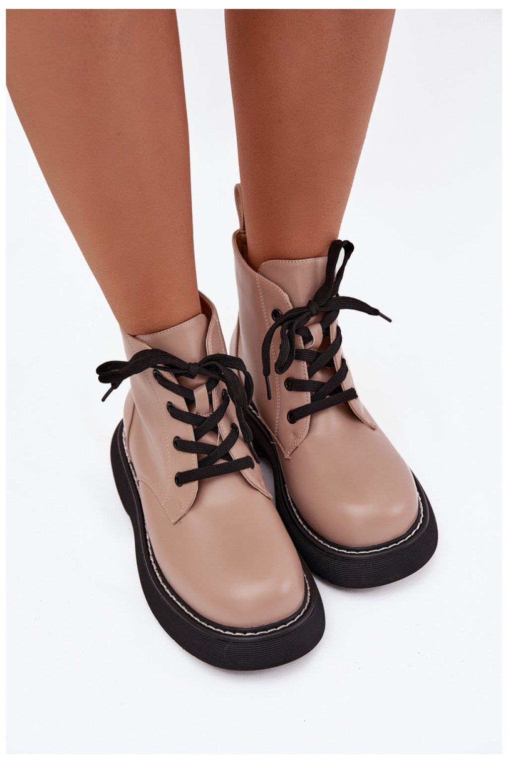 Botky pro ženy vyrobené z ekologické kůže jsou praktickou a módní volbou na chladnější dny. Umístěné na stabilní platformě poskytují pohodlí a pohodlí, a nízký střih se skvěle hodí do každodenních stylizací. Klasické šněrování usnadňuje přizpůsobení noze a zateplení obuvním koženým kocourem zaručuje teplo a pohodlí při nošení. Jedná se o univerzální botky, které skvěle doplní volné sestavy.