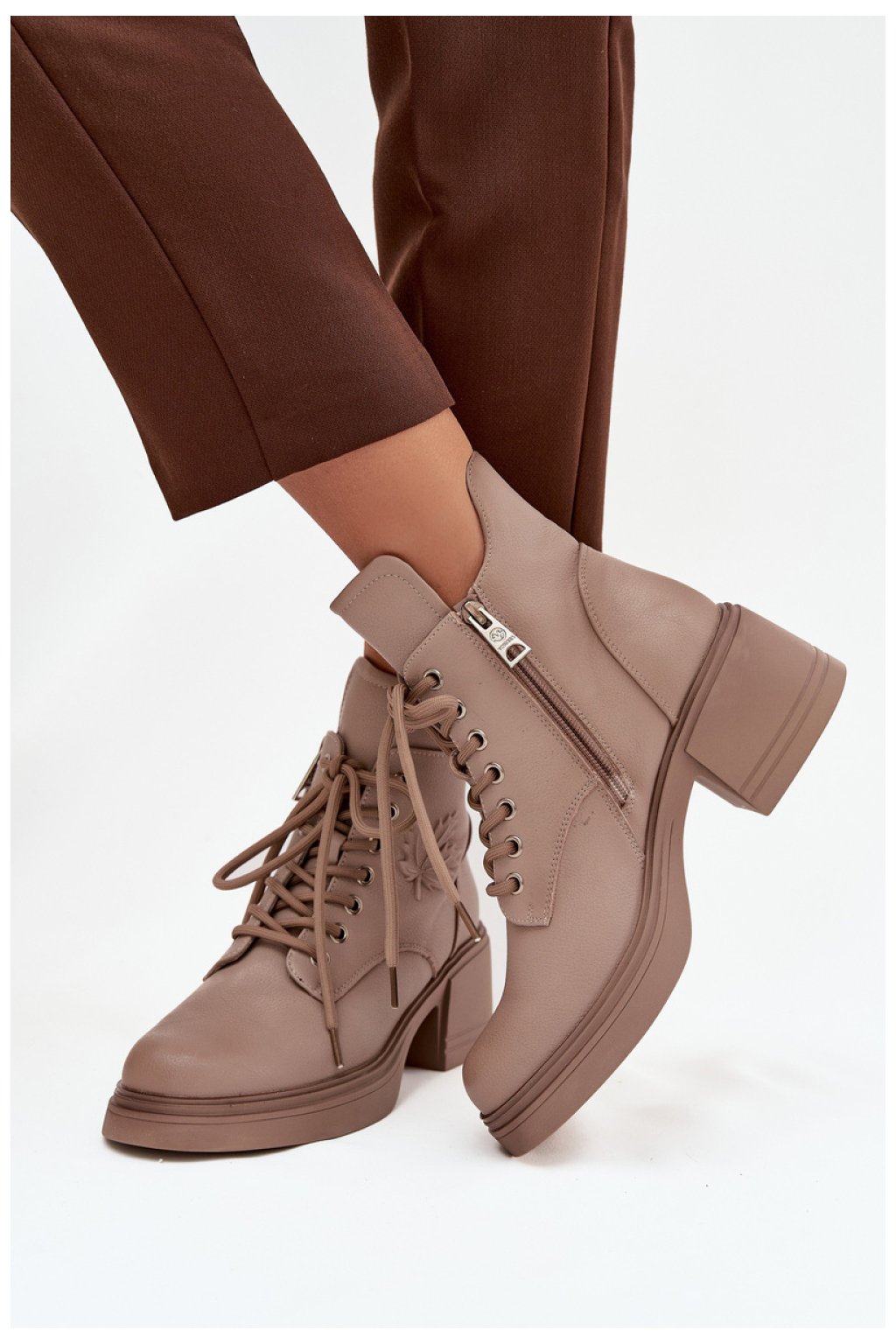 Dámské boty značky Vinceza vyrobené z přírodní kůže jsou skvělou obuví na chladnější dny. Stabilní podpatek typu kostka zajistí pohodlí během nošení, a kombinace šněrování s zipem usnadňuje obouvání a přizpůsobení noze. Vnitřní část je vyztužena měkkým podšívkovým fleecem, který poskytuje teplo a pohodlí, zatímco jemné tisknutí ve formě listu na straně dodává celku stylový akcent. Jedná se o model, který se hodí jak na každodenní nošení, tak i do elegantnějších stylizací.