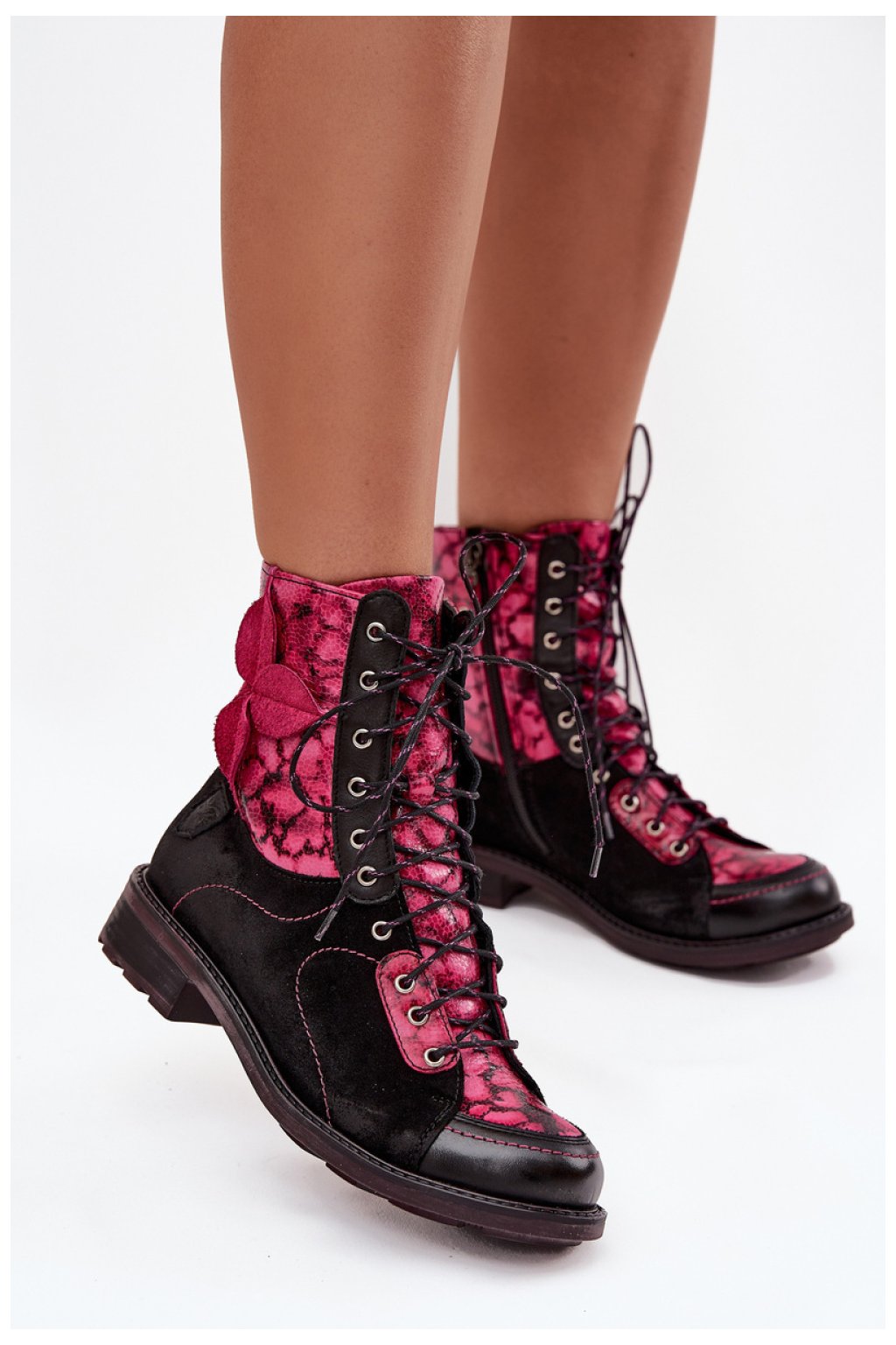 Botky značky Maciejka jsou jedinečnou nabídkou pro ženy, které ocení pohodlí a originální styl. Vyrobené z přírodní kůže, ohromují originálním vzhledem a ozdobný kvítek umístěný po straně špičky jim dodává decentní ženský charakter. Model je umístěn na ploché podrážce, co zaručuje pohodlné nošení každý den. Kombinace šněrování a praktického zipu zajišťuje, že boty se snadno přizpůsobí noze a jsou pohodlné při obouvání. Vnitřek je vyložen měkkým materiálem, který poskytuje teplo v chladnějších dnech. Jsou to botky, které se skvěle osvědčí v podzimní a zimní sezóně.