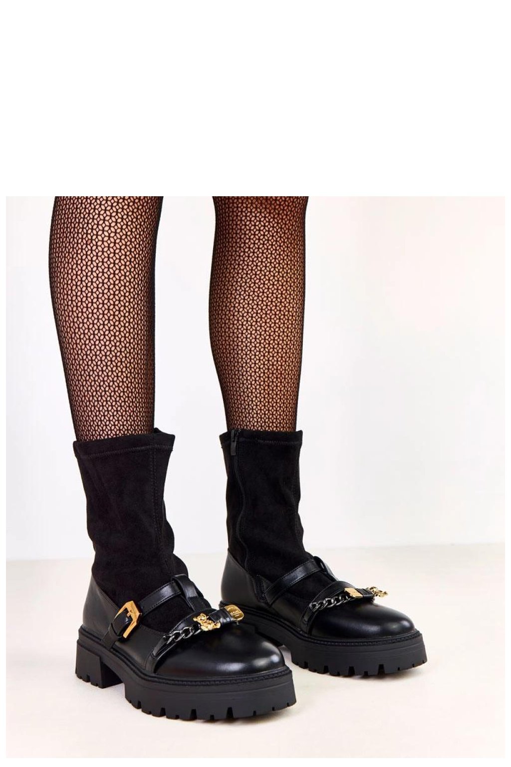 Elegantní a efektní dámské botky vyrobené z kombinace semišové ekologické kůže a ekologické kůže, které spojují eleganci s každodenním pohodlím. Model je vyhřívaný, co zajišťuje teplo v chladnějších dnech. Botky s výškou nad kotníkem a 20 cm vysokým límcem se skvěle přizpůsobují noze, kulatý špičatý nos a podpatek a nízká platforma zaručují pohodlí při chůzi. Boční zip usnadňuje rychlé obouvání a svlékání. Výjimečný charakter dodává ozdobná spona a visící medvědí řetízek, který botům dodává dívčí a módní akcent. Vložka z umělé hmoty zajišťuje pohodlí nošení a botky jsou nové a připravené k nošení. Ideální volba pro ženy, které ocení módní vzhled, pohodlí a decentní, efektní detaily v každodenních stylizacích.