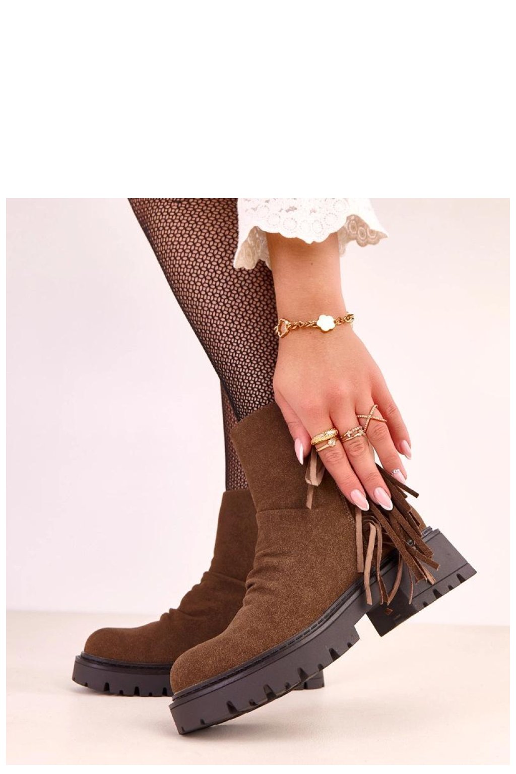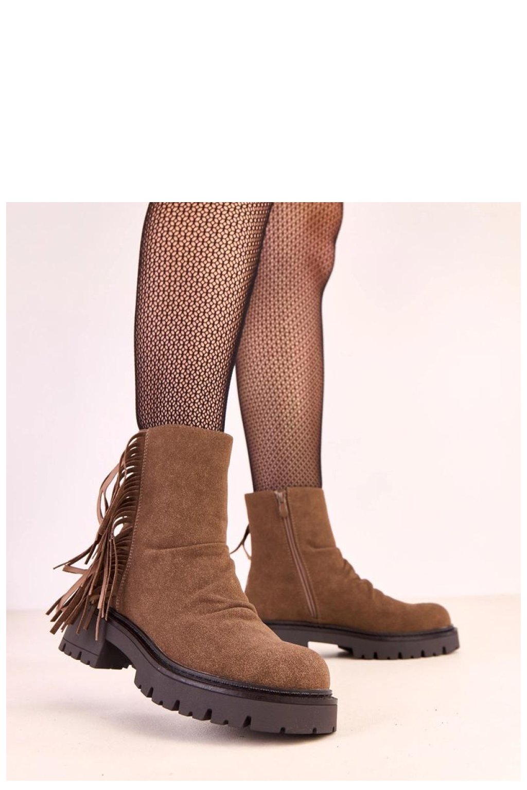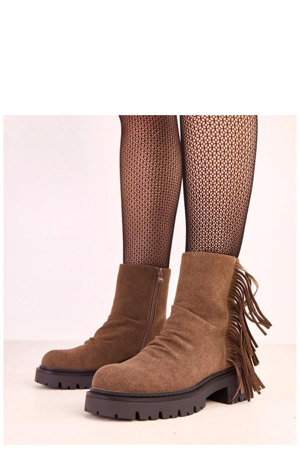 Moderní kotníkové boty na tlusté podrážce, které spojují pohodlí s efektním stylem. Vyrobené z vysoké kvality semišové ekologické kůže, působí stylově a skvěle zapadají do podzimní a zimní módy. Model je zdobený rafinovanými řasami, které botám dodávají lehkost a charakter, a kulatý špičatý nos zajišťuje pohodlí při nošení. Tlustá podrážka a stabilní podpatek o výšce 5 cm zaručují pevný krok a pohodlí i při delší procházce. Díky vyhřívání vnitřku a zapínání na zip jsou botky praktické a teplé v chladnějších dnech. Štíhlá výška 14,5 cm elegantně obepíná kotník, zdůrazňující postavu a vytvářející módní, moderní vzhled.