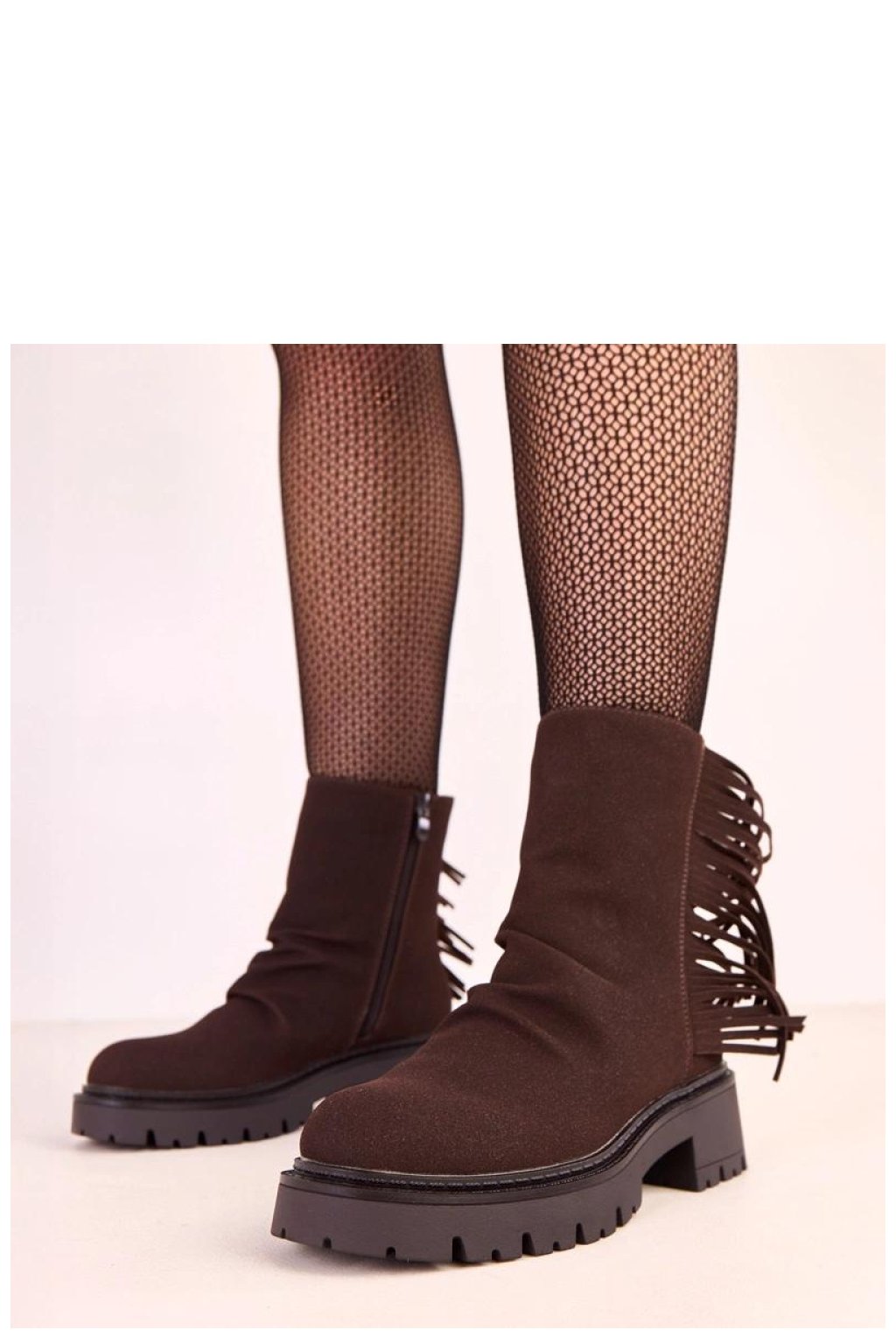 Moderní kotníkové boty na tlusté podrážce, které spojují pohodlí s efektním stylem. Vyrobené z vysoce kvalitního semišového ekologického kůže, působí stylově a skvěle zapadají do podzimně-zimních trendů. Model se vyznačuje ozdobnými řasami, které botám dodávají lehkost a charakter, zatímco kulatý špičatý nosek zajišťuje pohodlí nošení. Tlustá podrážka a stabilní podpatek o výšce 5 cm zaručují jistý krok a pohodlí i během delší procházky. Díky vnitřnímu zateplení a zapínání na zip jsou botky praktické a teplé v chladnějších dnech. Štíhlá chodidla o výšce 14,5 cm elegantně obejmou kotník, zdůrazňují postavu a vytvářejí moderní, moderní vzhled.