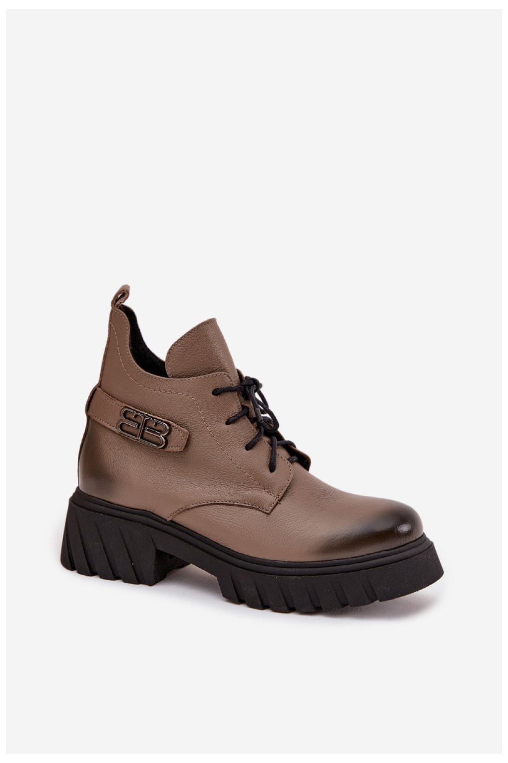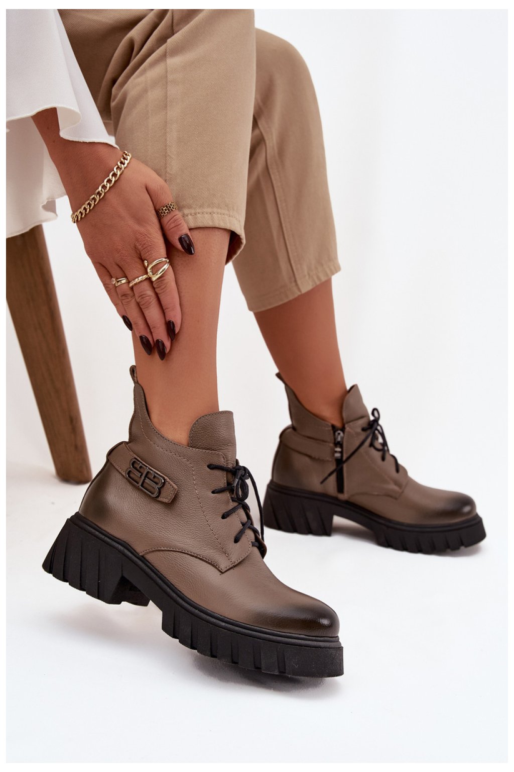 Dámské kotníkové boty vyrobené z přírodní kůže. Zapínají se na zip a navíc mají šněrování. Špičky jsou zaoblené. Vnitřek je vyplněn měkkým filcem, který poskytuje teplo i v nejchladnějších dnech. Filc nejen chrání před chladem, ale také zvyšuje pohodlí nošení díky své měkkosti a izolačním vlastnostem. To zaručuje, že kotníkové boty jsou ideální volbou na podzimní a zimní měsíce, zajistí nejen stylový vzhled, ale také pohodlí a ochranu před chladem. Tyto boty jsou skvělou kombinací klasického stylu a moderních prvků, které se osvědčí v různých stylizacích, od casual až po elegantní.