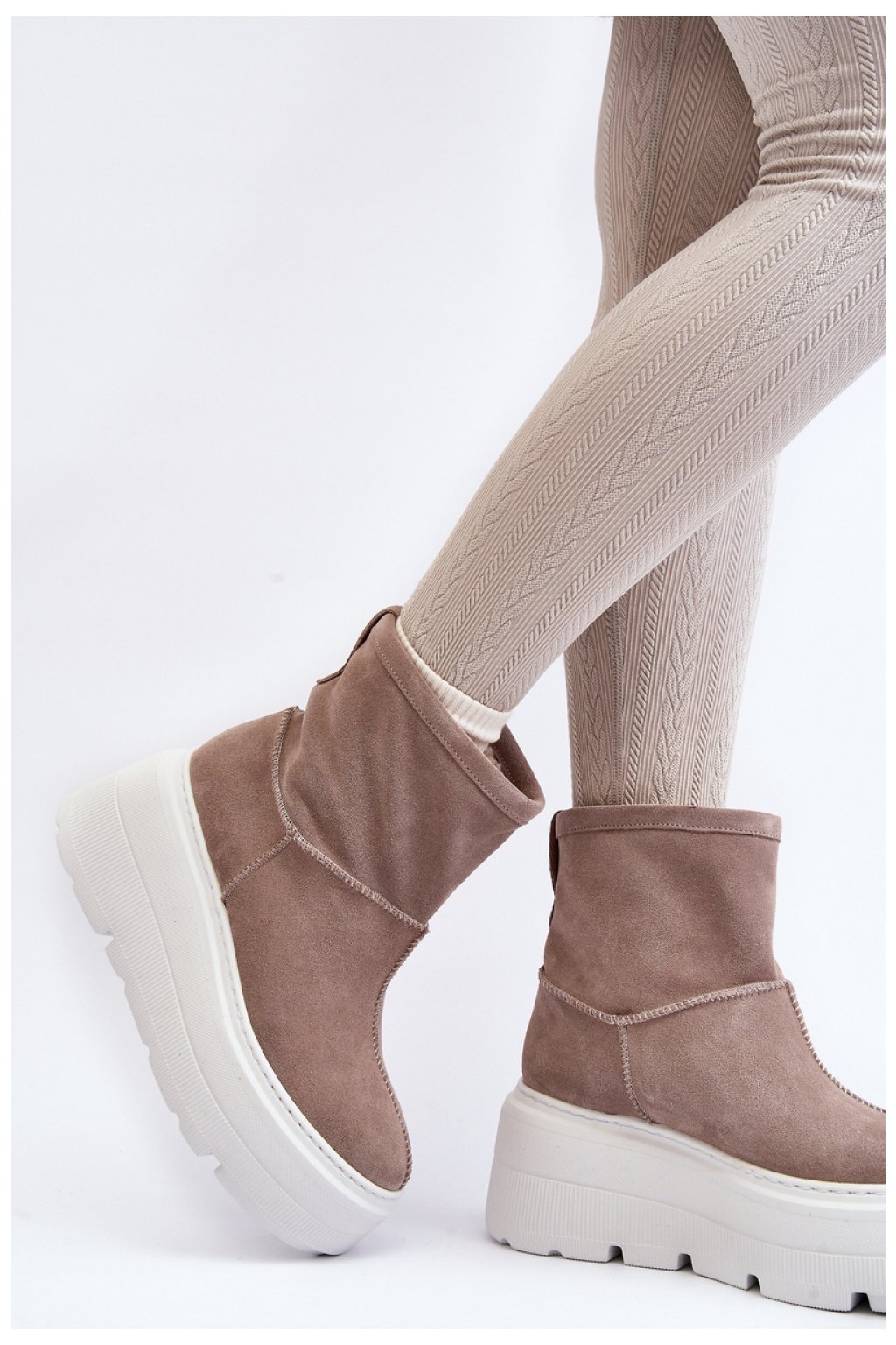 Dámské boty z přírodní kůže. Stojí na masivní platformě. Nazouvací model se svrškem v délce nad kotníky. Uvnitř zateplené ovčí kůží. Zaoblená špička. Měkká stélka pro pohodlí během používání. Boty, které musíte mít!