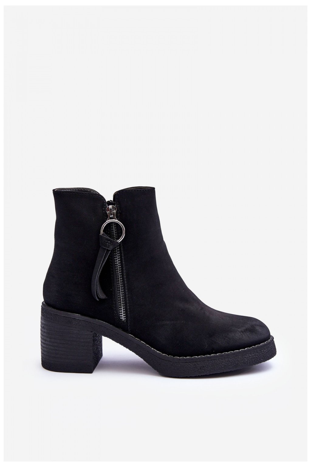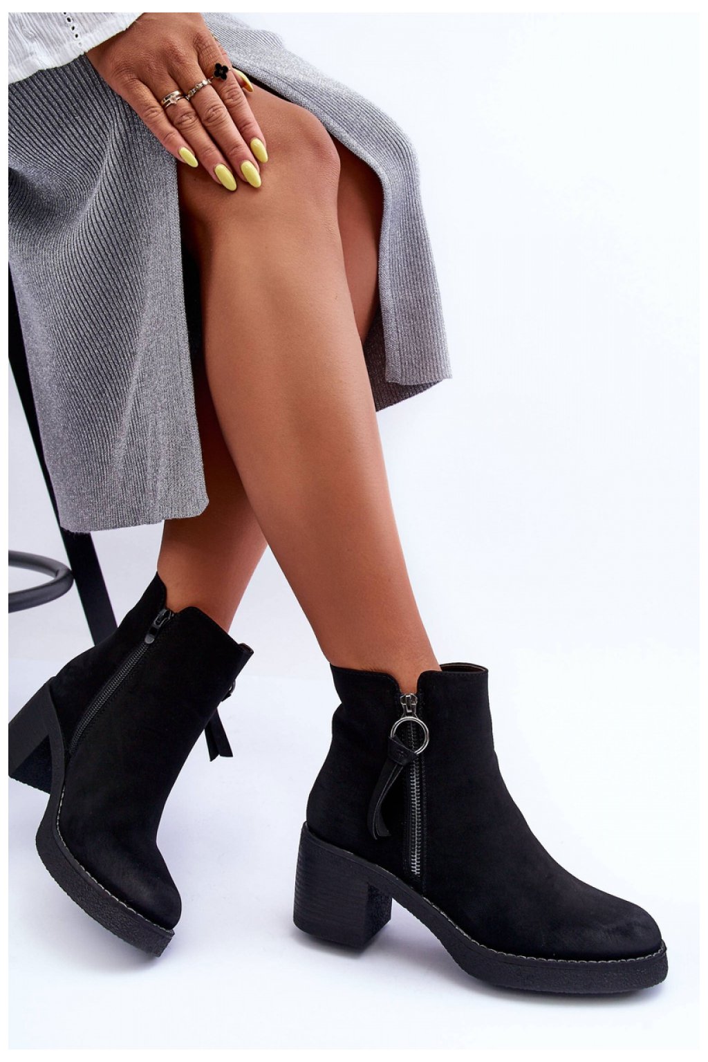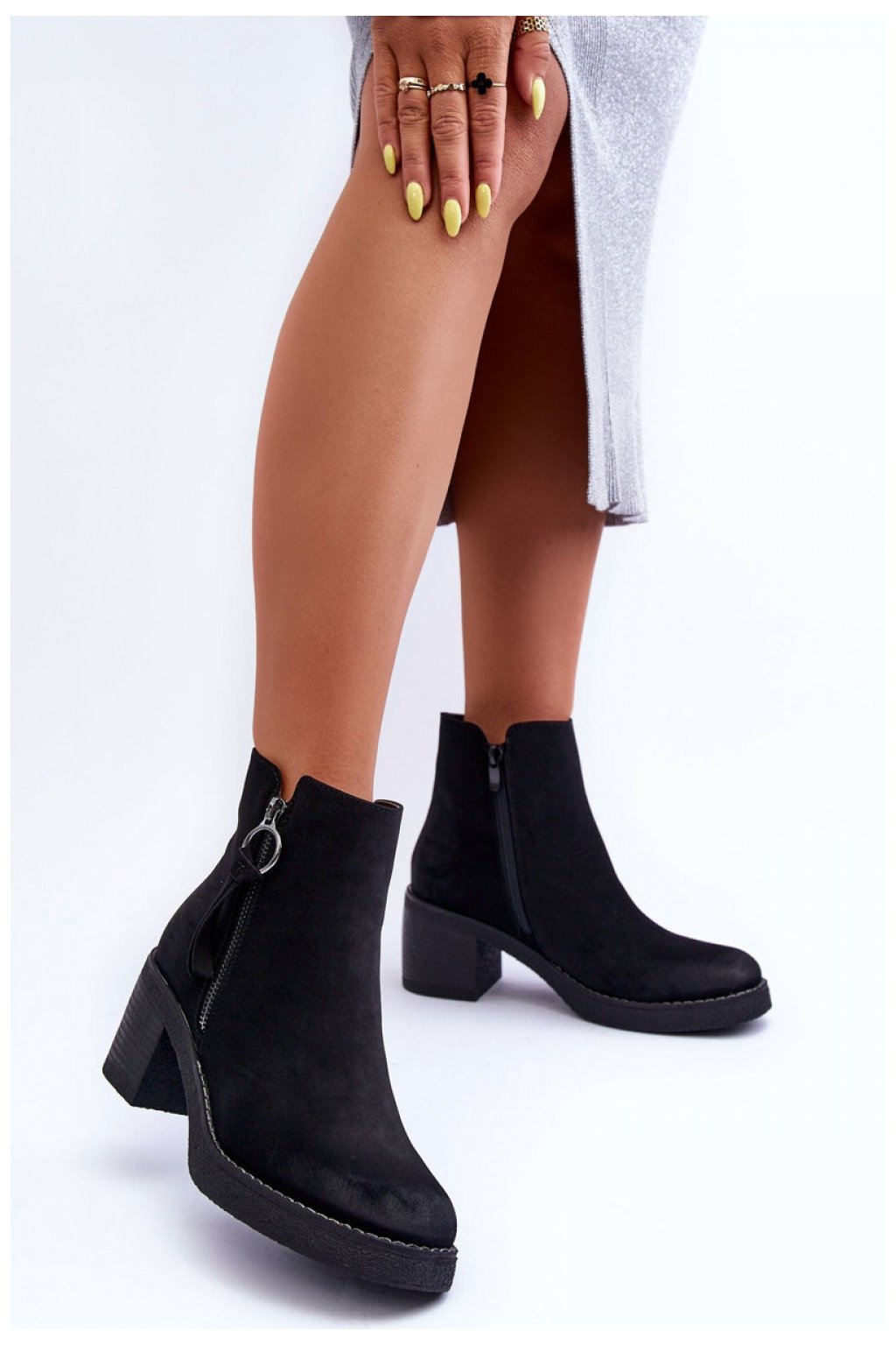 Dámské boty byly vyrobeny z ekologického semiše. Stojí na platformě a podpatku. Tento model má zaoblenou špičku a zapínání na zip na boku. Jsou zateplené přikrývkou na boty. Přídavný zip na vnější straně boty se nerozepíná. Boty na podpatku jsou ideální volbou pro podzimní stylizaci. Nečekejte, až zmizí, a kupte si je ještě dnes!