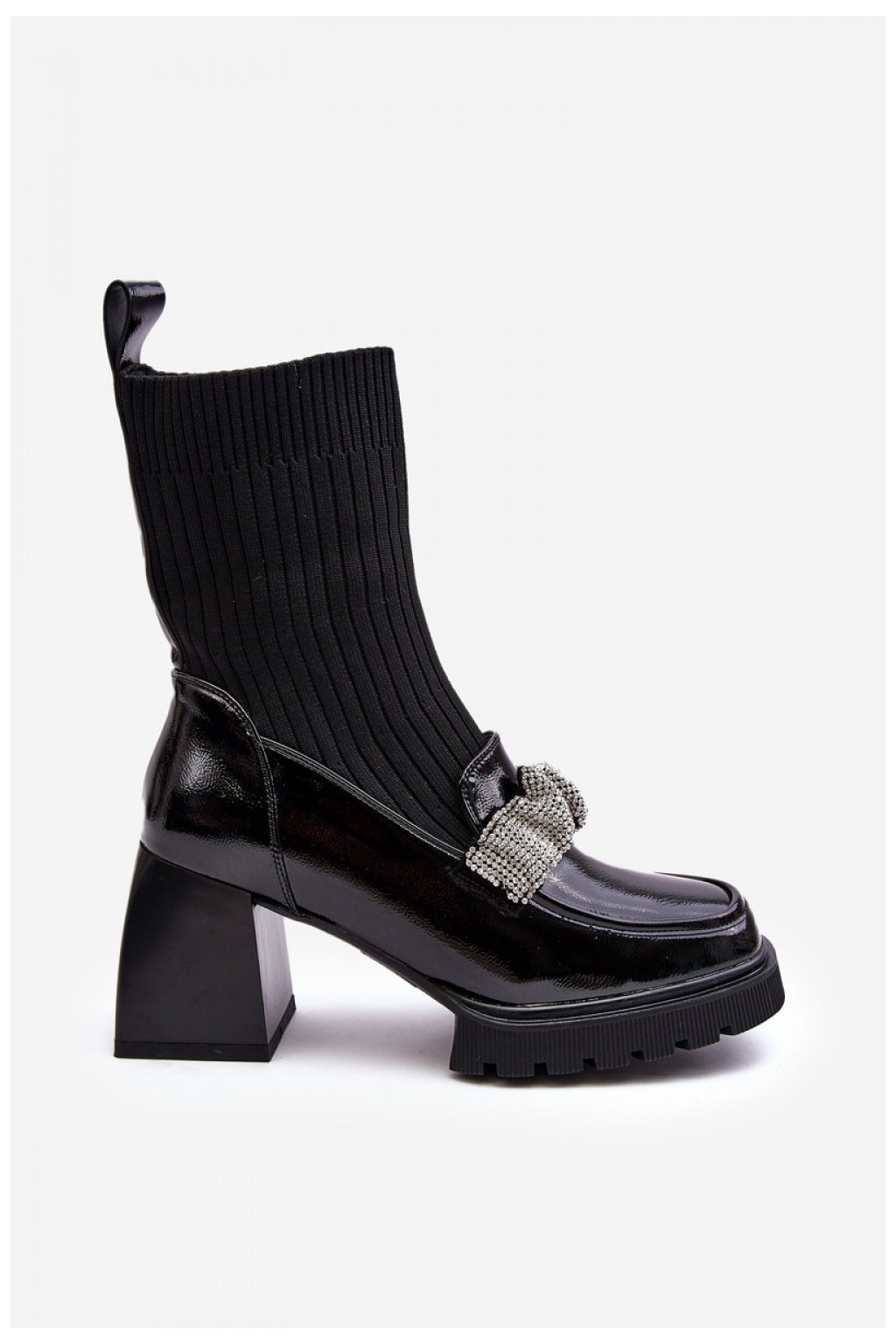 Dámské boty byly vyrobeny z kvalitní ekokůže. Svršek ve tvaru ponožky. V přední části nařasený pásek, zdobený třpytivými kamínky. Čtvercová špička. Model posazený na podpatku v podobě stabilního bloku. Vyztužený podpatek. Tento model je HITem letošní sezony, musíte ho mít!