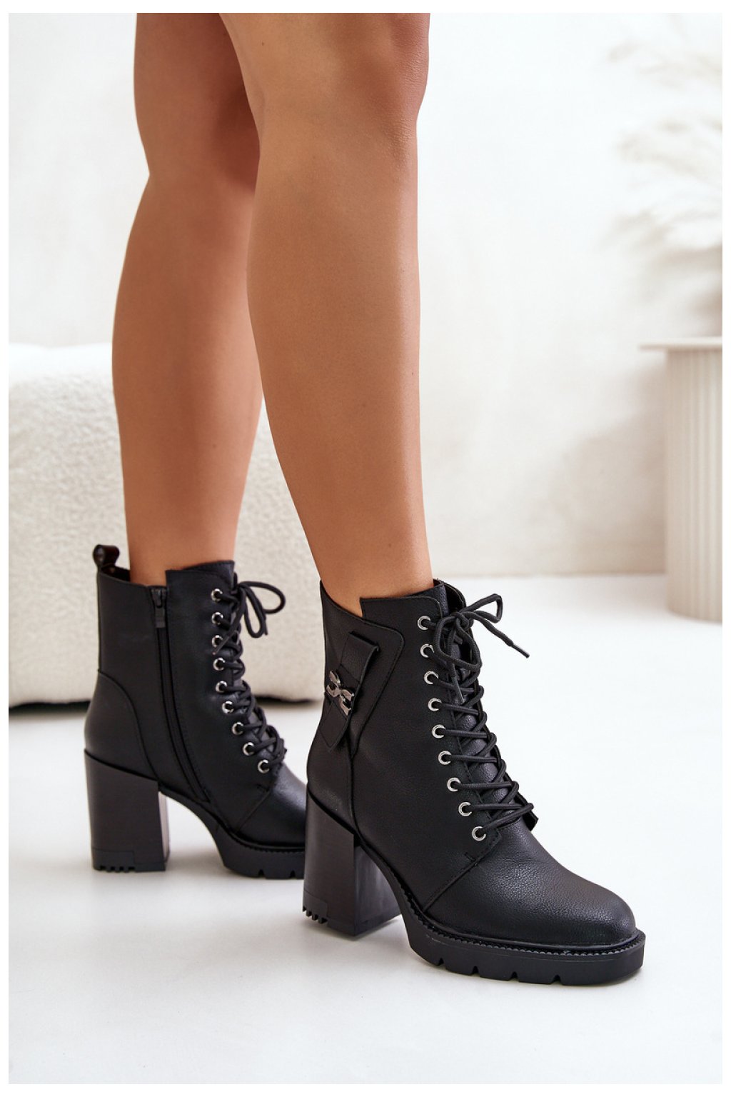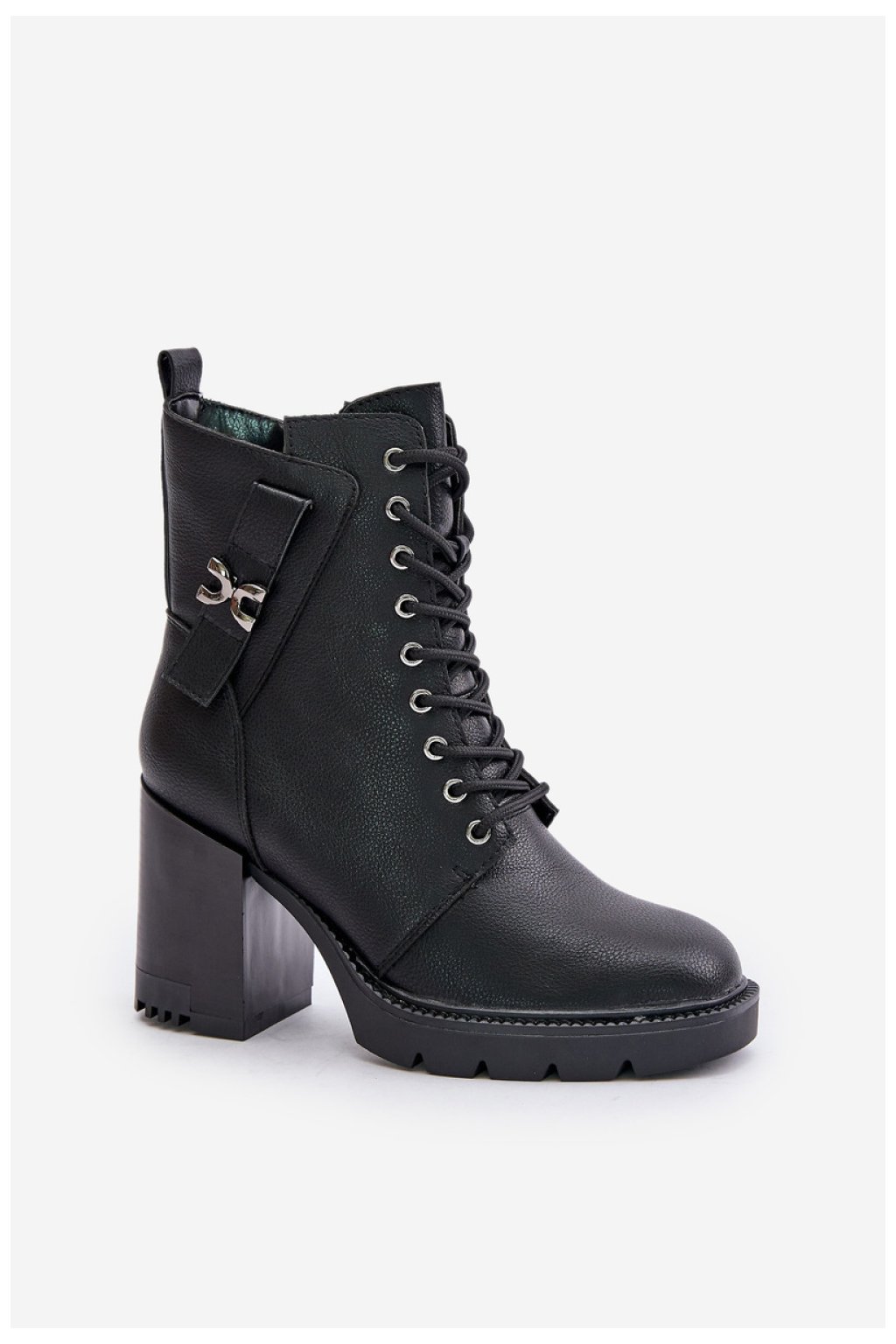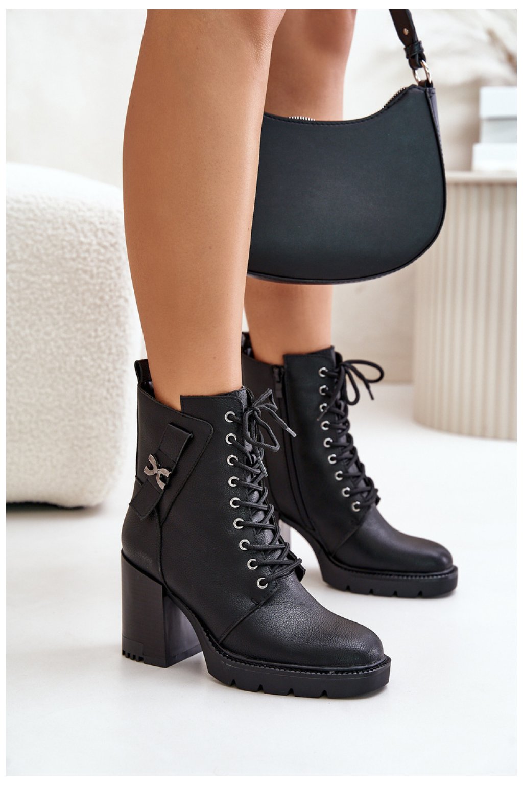 Boty od značky Jezzi, vyrobené z ekologické kůže. Stojí na stabilním jehlovém podpatku. Model se zapíná na zip a navíc se šněruje, což zaručuje dokonalé přizpůsobení. Zateplený vnitřek poskytuje pohodlí v chladnějších dnech. Na svršku se nachází stylový pásek zdobený zlatým detailem, který dodává eleganci a podtrhuje jedinečný charakter.