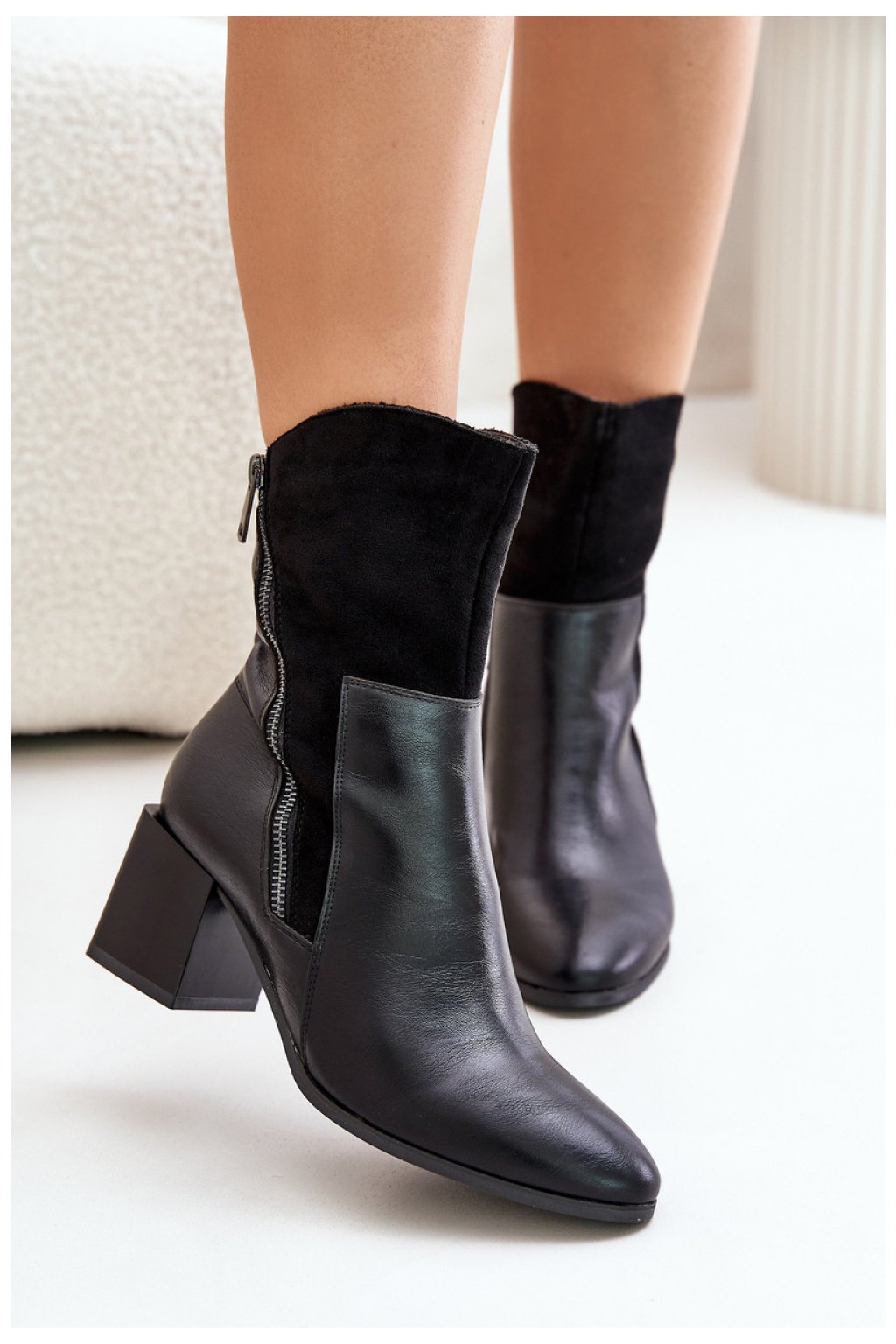 Dámské boty z ekologické kůže na stabilním jehlovém podpatku. Zapínají se na zip, navíc s ozdobným zipem, který jim dodává charakter. Vnitřek zateplený přikrývkou na boty, která poskytuje teplo a pohodlí v chladnějších dnech. Ideální volba pro ženy, které ocení styl a pohodlí.