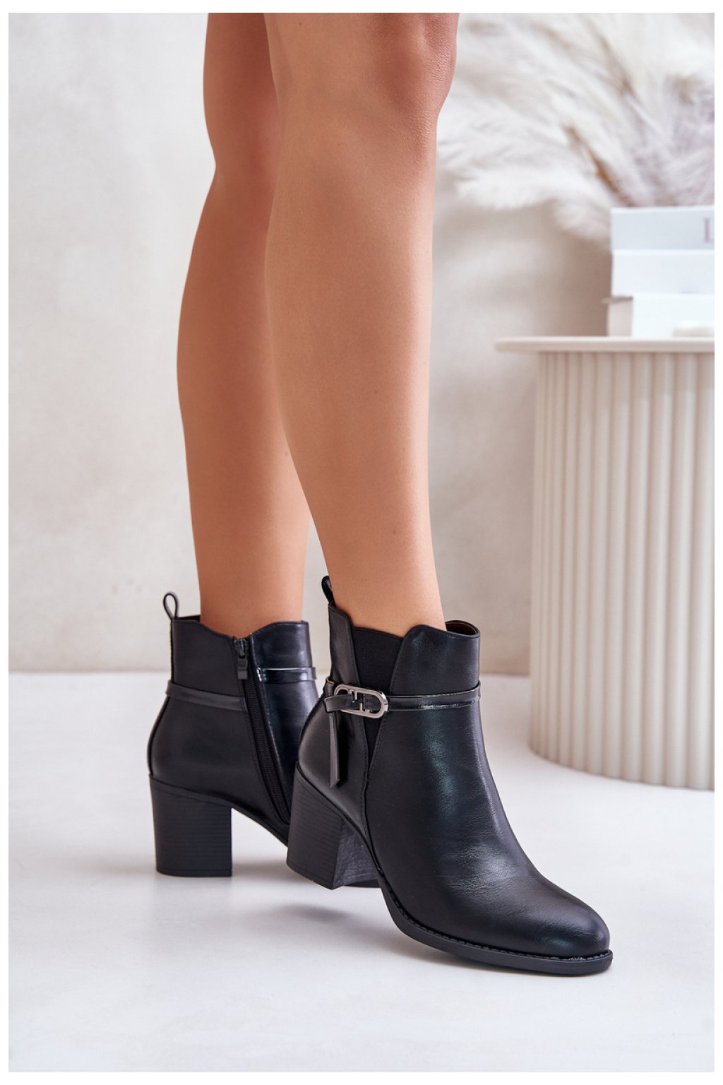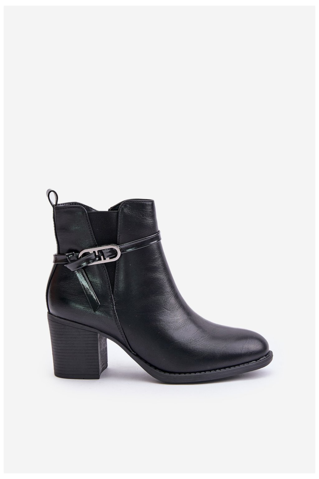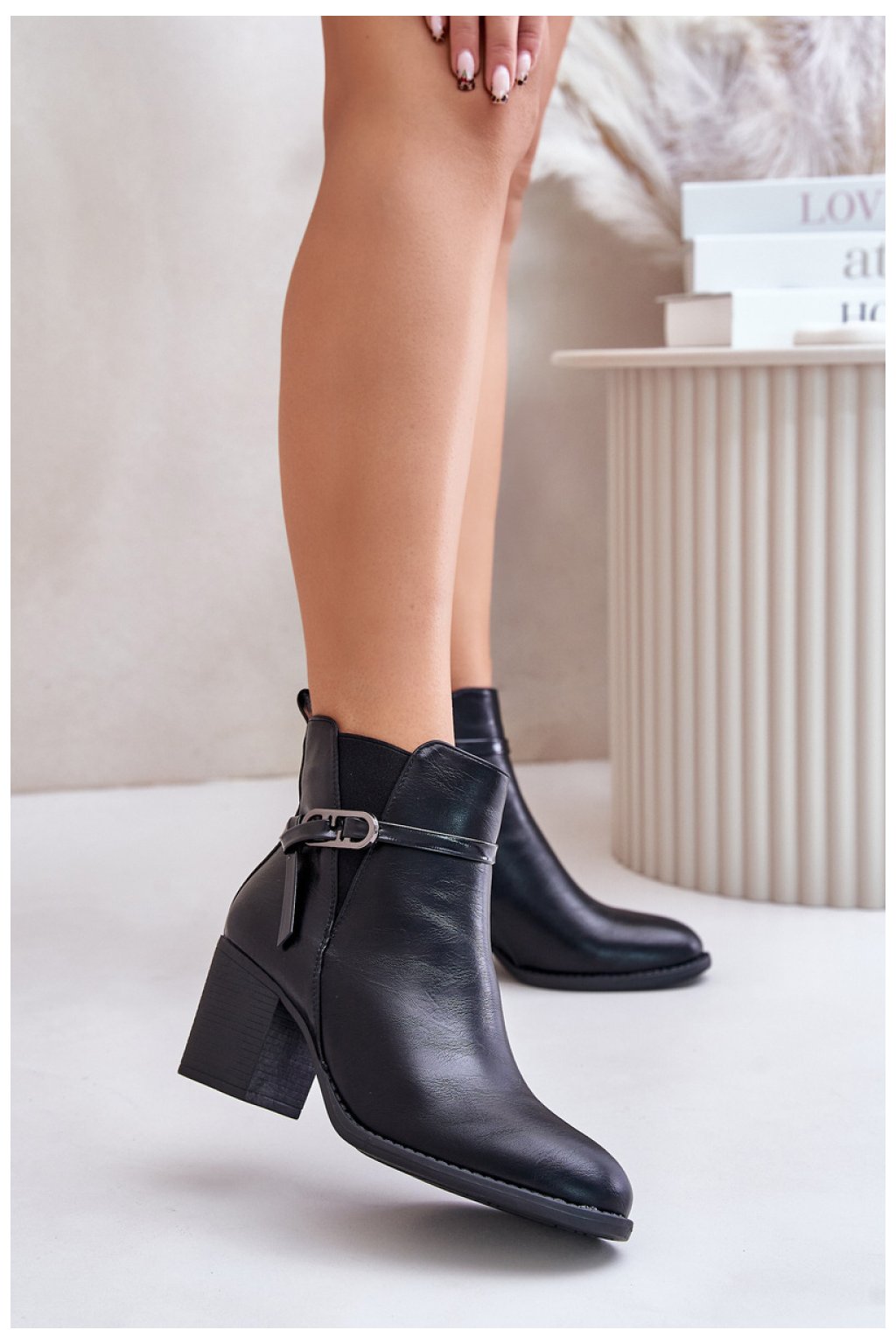 Dámské boty od značky Jezzi. Vyrobeny z ekologické kůže. Na jehlovém podpatku. Zaoblená špička. Uvnitř zateplené přikrývkou na boty. Pásek na svršku, který dodává eleganci. Zapínání na zip. Módní a pohodlné, tyto kozačky nesmí chybět ve vašem šatníku!