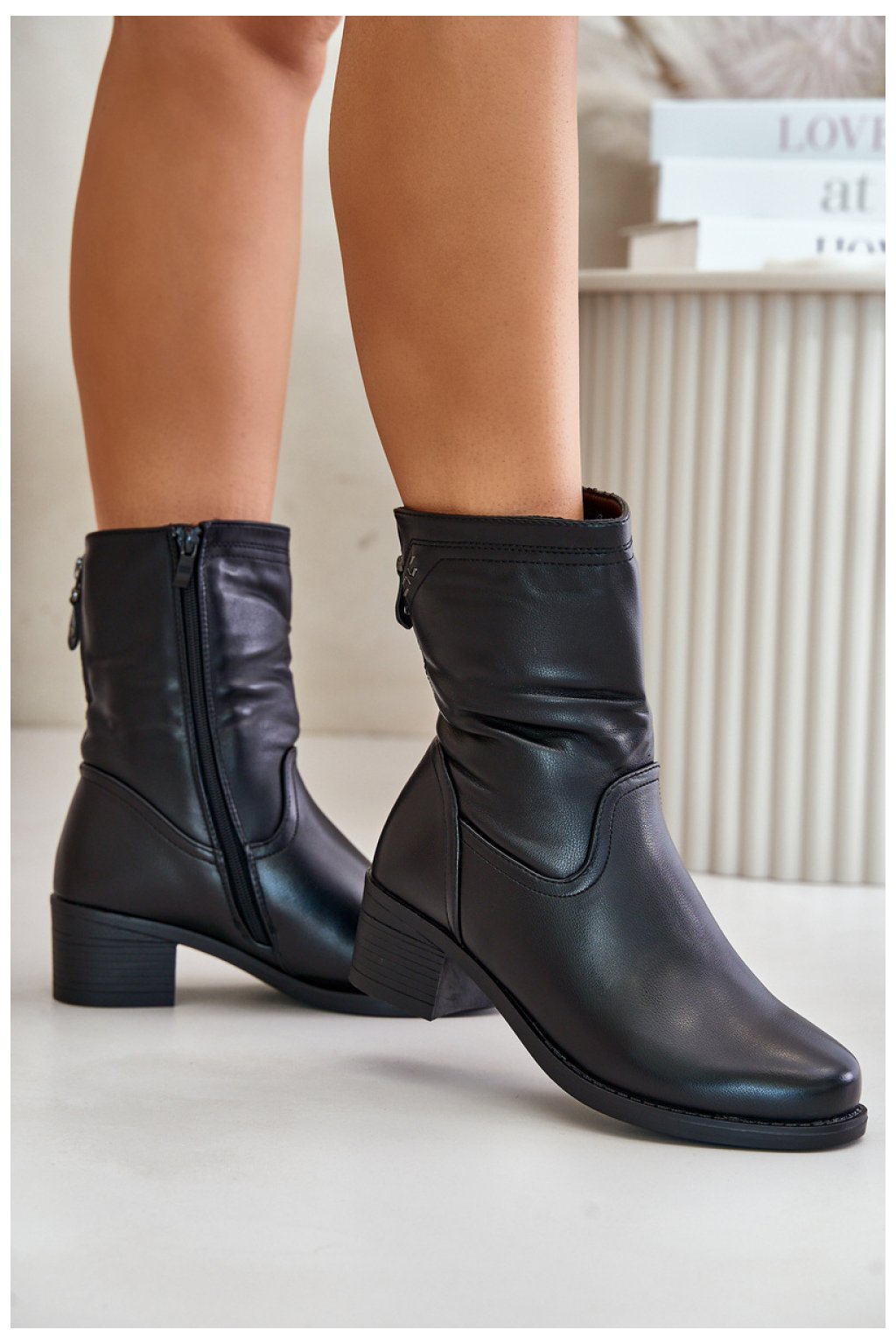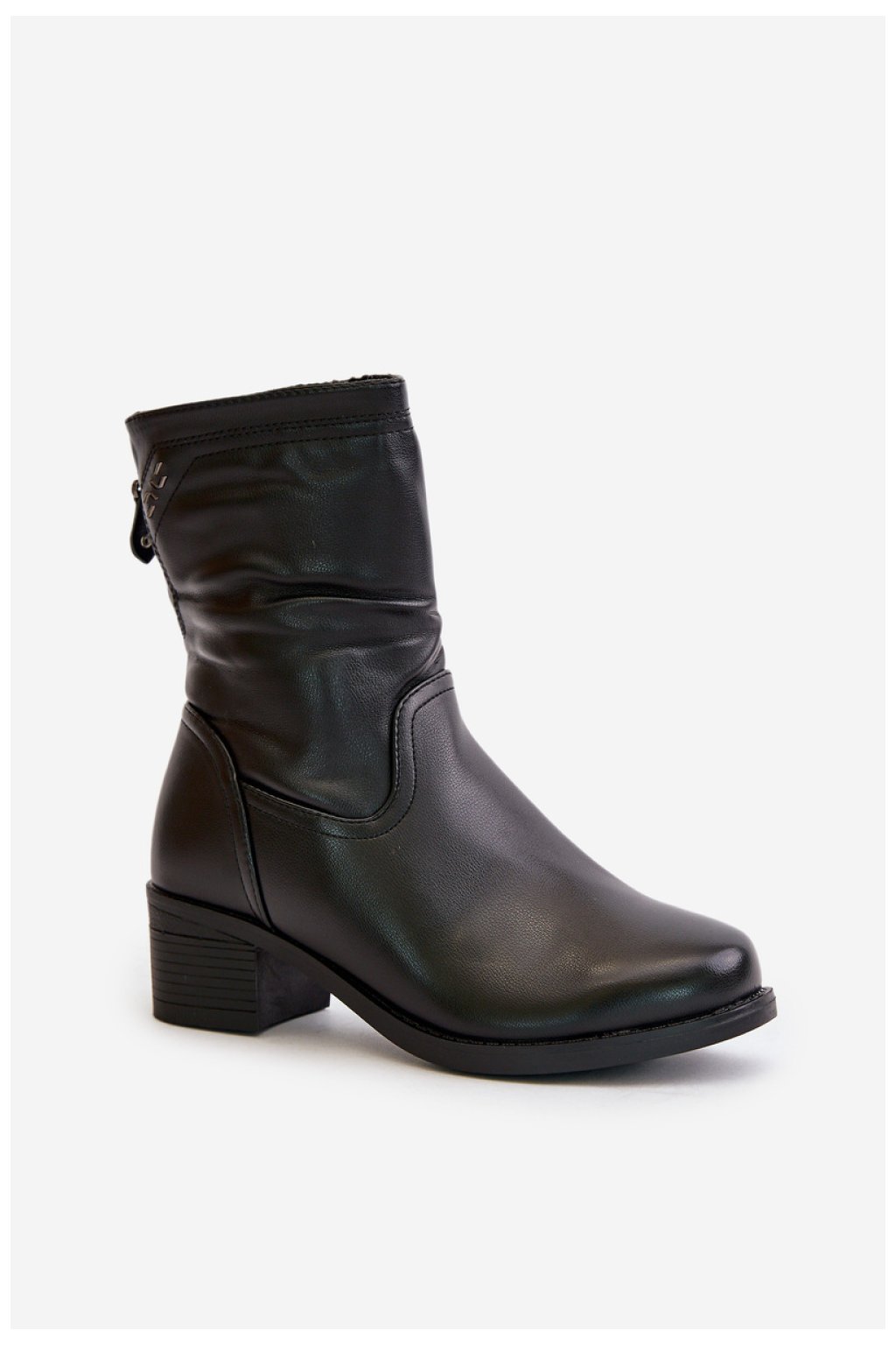 Dámské boty z ekokůže jsou kombinací stylu a funkčnosti pro chladnější dny. Jsou usazeny na nízkém podpatku a poskytují pohodlí při každodenním nošení. Vnitřek je zateplený hustým kožíškem, který zaručuje teplo a pohodlí i v mrazivých dnech. Svršek je mírně zvrásněný, což modelu dodává ležérní, módní vzhled. Díky zapínání na zip je obouvání a zouvání bot rychlé a snadné.