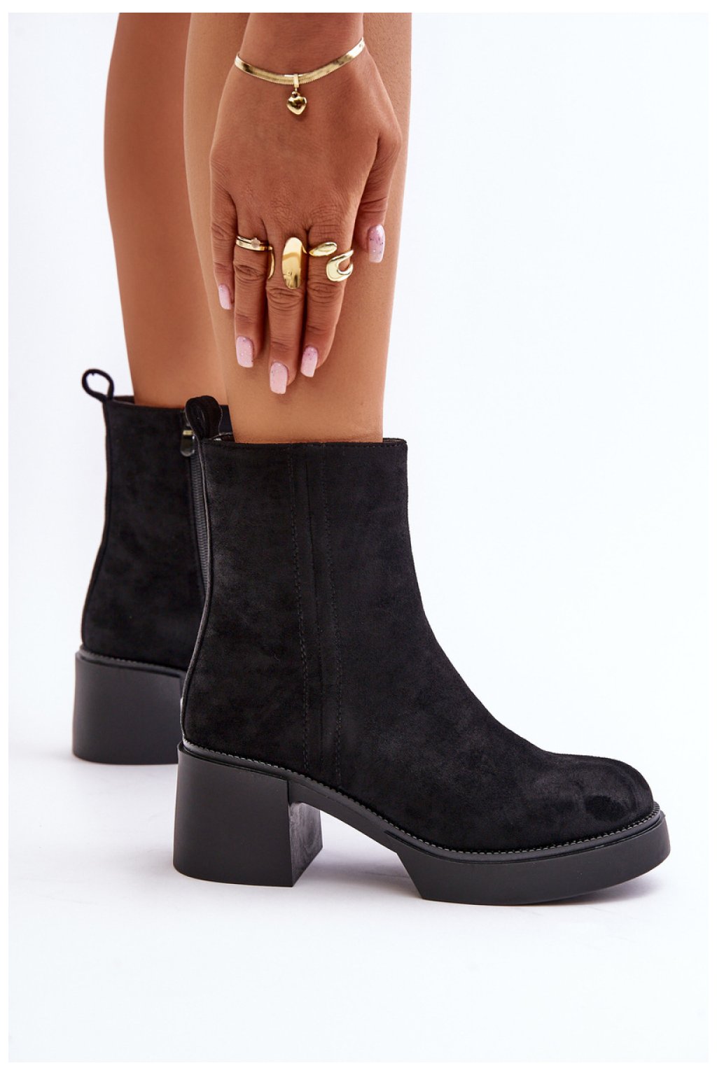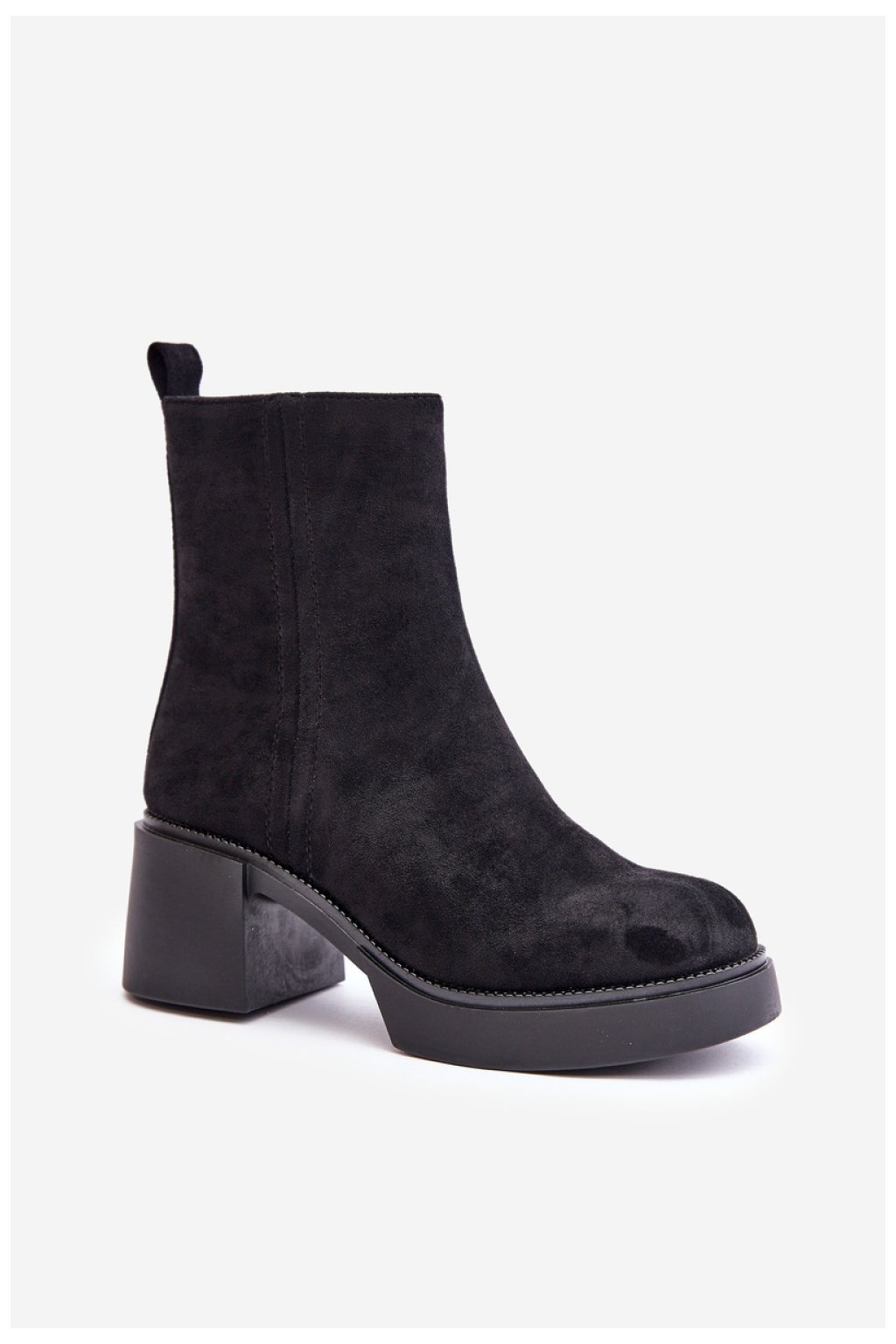 Dámské kozačky na stabilním jehlovém podpatku a platformě z ekokůže jsou stylovou volbou pro chladnější dny. Vnitřek je zateplen příjemnou dekou na boty, která zajišťuje tepelný komfort. Zaoblená špička a zpevněná pata zaručují pohodlí a oporu pro nohu. Tento model skvěle doplní váš podzimně-zimní styling a dodá mu šik a elegantní nádech.