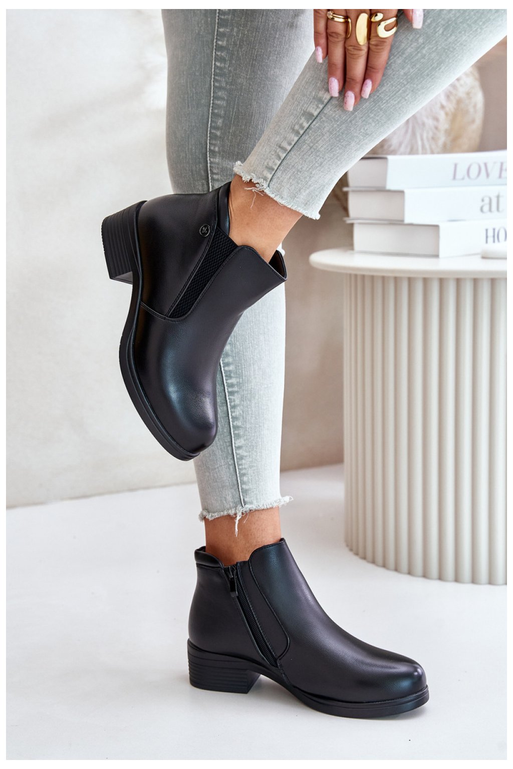 Dámské boty se svrškem v délce nad kotníky. Jsou na nízkém podpatku a poskytují pohodlí pro každodenní nošení. Díky zapínání na zip je obouvání a zouvání bot rychlé a snadné. Vnitřek je zateplený hustým kožíškem. Zaoblená špička. Tento model se bude skvěle hodit pro ležérní styling!