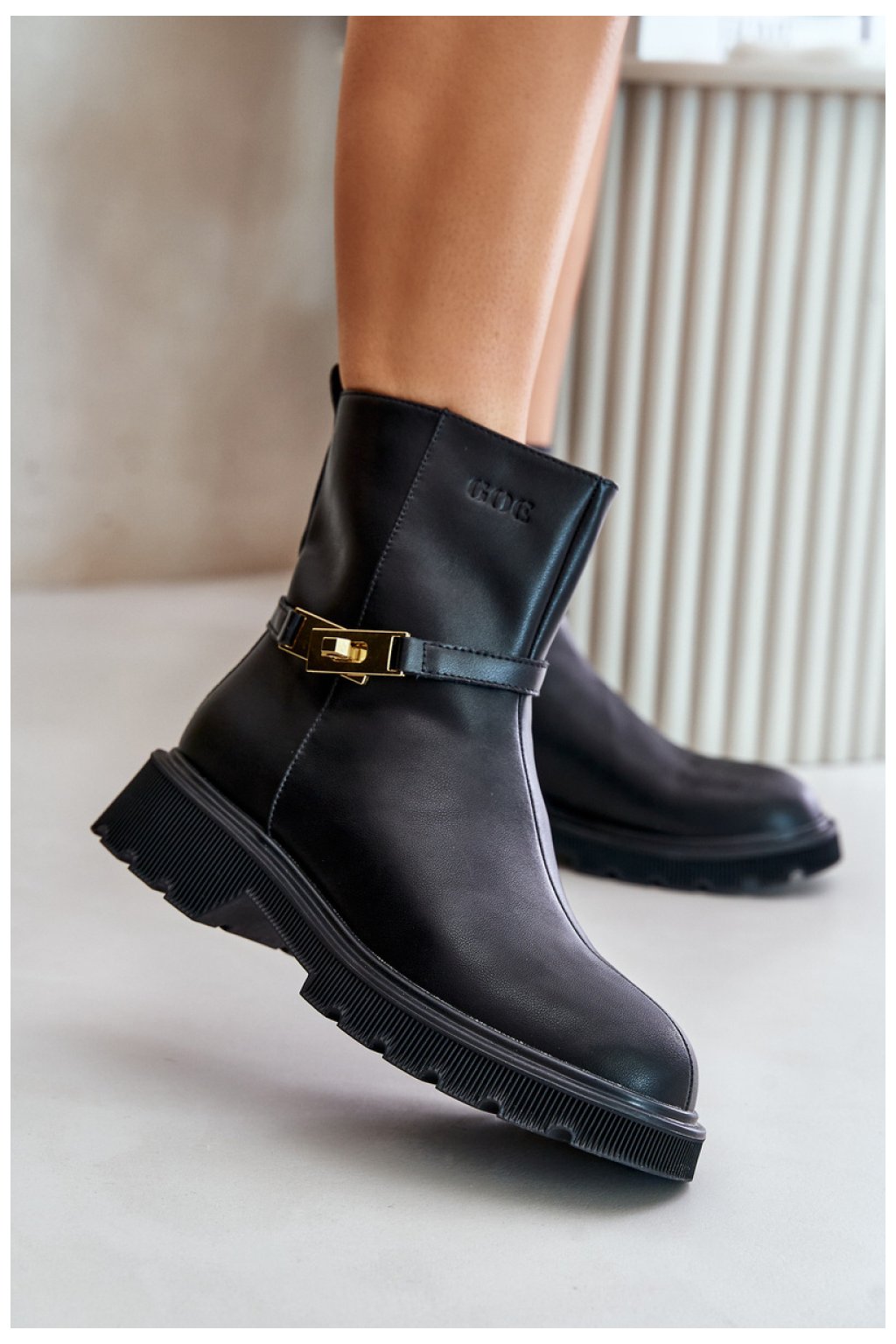 Tyto dámské boty Goe jsou vyrobeny z vysoce kvalitní přírodní kůže a představují kombinaci stylu a pohodlí. Jsou usazeny na plochém podpatku a poskytují pohodlné nošení po celý den. Model se zapínáním na zip, se zaoblenými špičkami a decentním páskem zdobícím svršek, který jim dodává na eleganci. Vnitřek je zateplen měkkou přikrývkou na boty, která zaručuje teplo a pohodlí v chladnějších dnech.