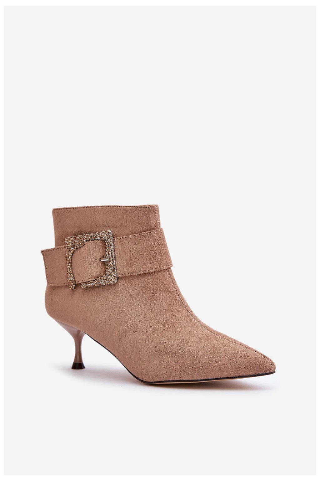 Stylové boty na jehlovém podpatku. Vyrobené z ekokůže. Zapínají se na zip, poskytují pohodlí a snadné nazouvání. Špičatá špička dodává botám sofistikovaný nádech, zdůrazňuje ženskost a štíhlost siluety. Hlavním znakem tohoto modelu je velká ozdobná spona na boku svršku. Perfektní pro zvláštní příležitosti i každodenní styling!