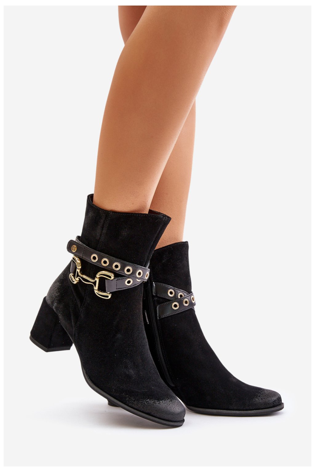 Dámské kozačky značky Maciejka z kvalitního přírodního semiše. Vyznačují se ozdobným páskem na boku svršku, který je zdoben zlatými prvky. Tento model se zapíná na zip. Osazeny jsou na jehlovém podpatku. Vnitřní část je mírně zateplená. Měkká stélka zajišťuje vysoký komfort používání. Elegantní střih, který byste měli mít ve svém šatníku!
