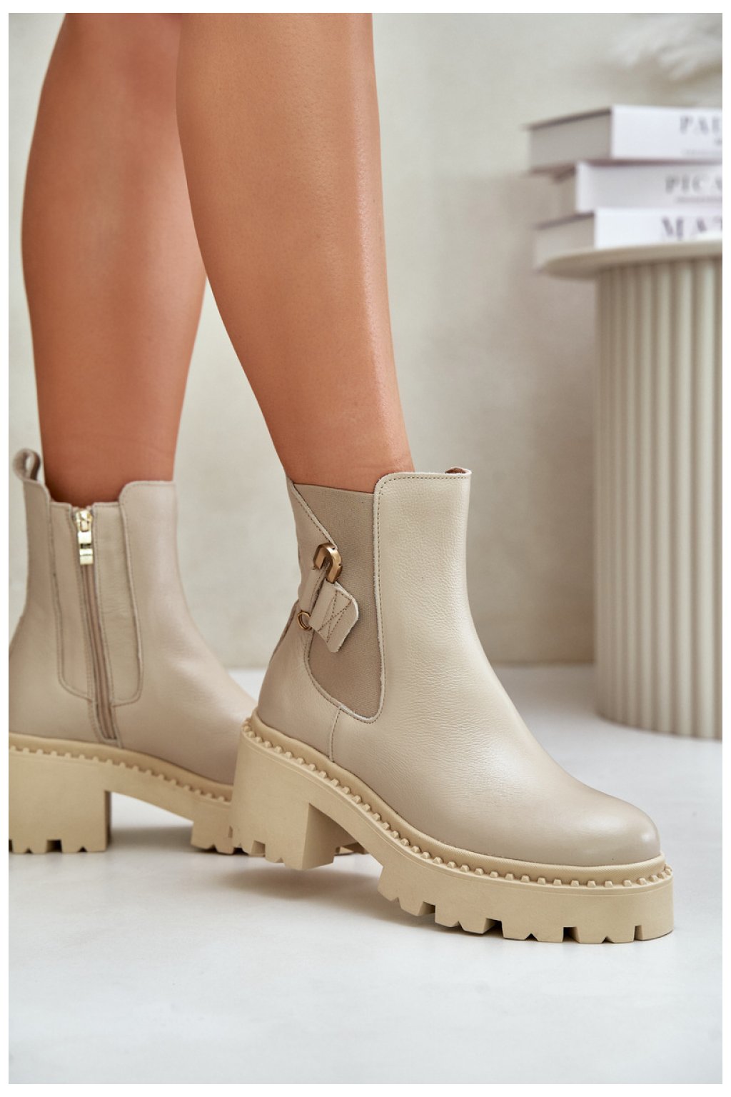 Botky vyrobené z vysoké kvality přírodní kůže. Zapínají se na zip. Vyztužené filcem, co zaručuje pohodlí v chladných dnech. Model má zaoblené špičky a je umístěn na masivním podpatku, co přidává stabilitu. Hlavním atoutem je ozdoba ve formě sponky.