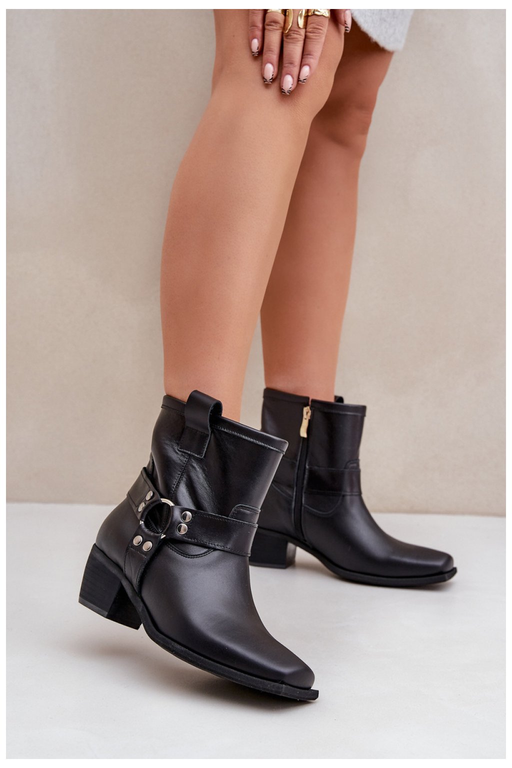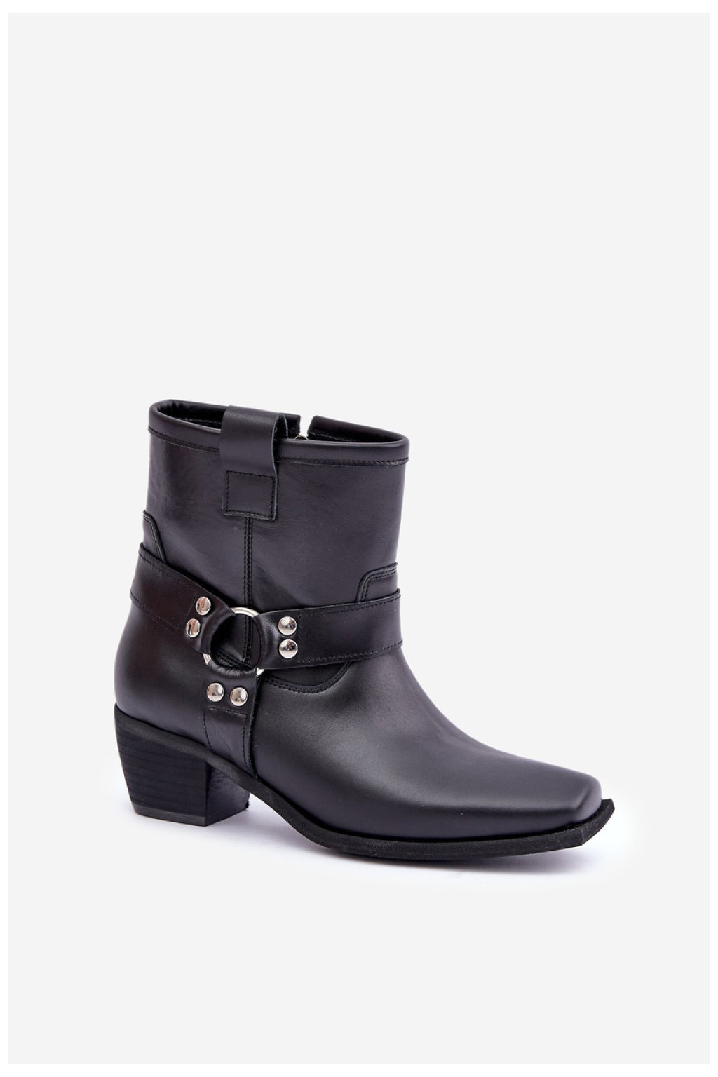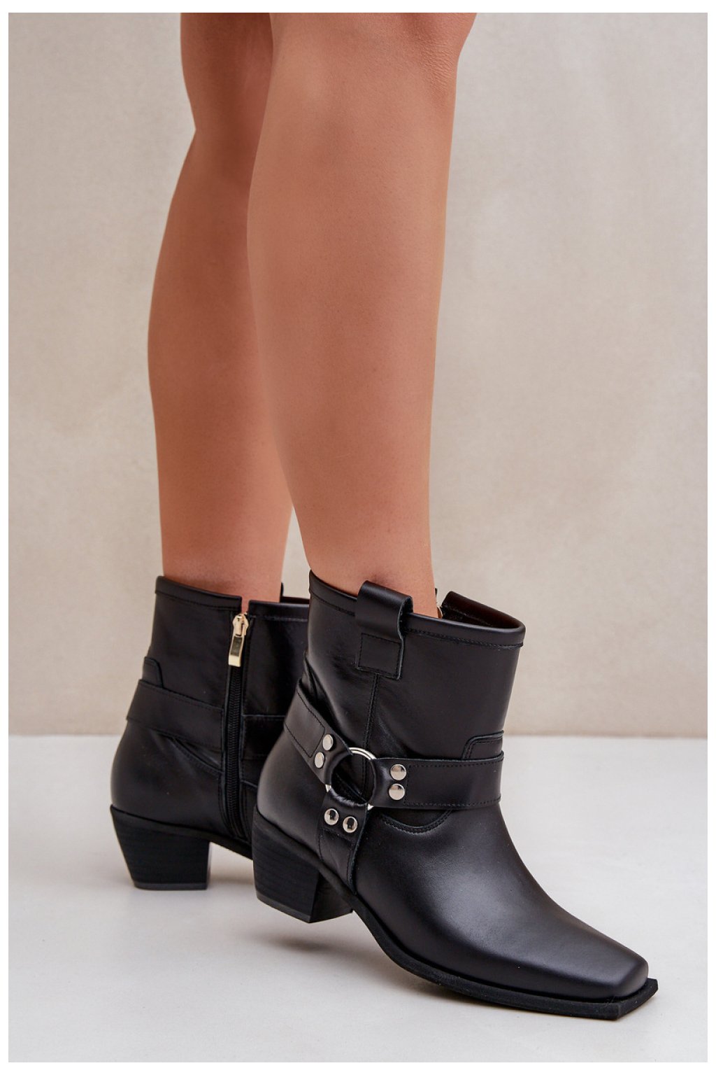 Dámské kozačky z přírodní kůže jsou stylový model, ideální na chladnější dny. Umístěné na stabilním sloupkovém podpatku poskytují pohodlí a decentně prodlužují postavu. Zapínají se na zip pro snadné obouvání, a kulaté špičky s čtvercovou podrážkou jim dodávají moderní charakter. Stříbrné ozdobné prvky zdobí svršek, což dodává eleganci a přitahuje pohled. Tyto jedinečné kozačky se skvěle hodí jak do každodenních, tak do formálních stylizací, spojují pohodlí s moderním designem.