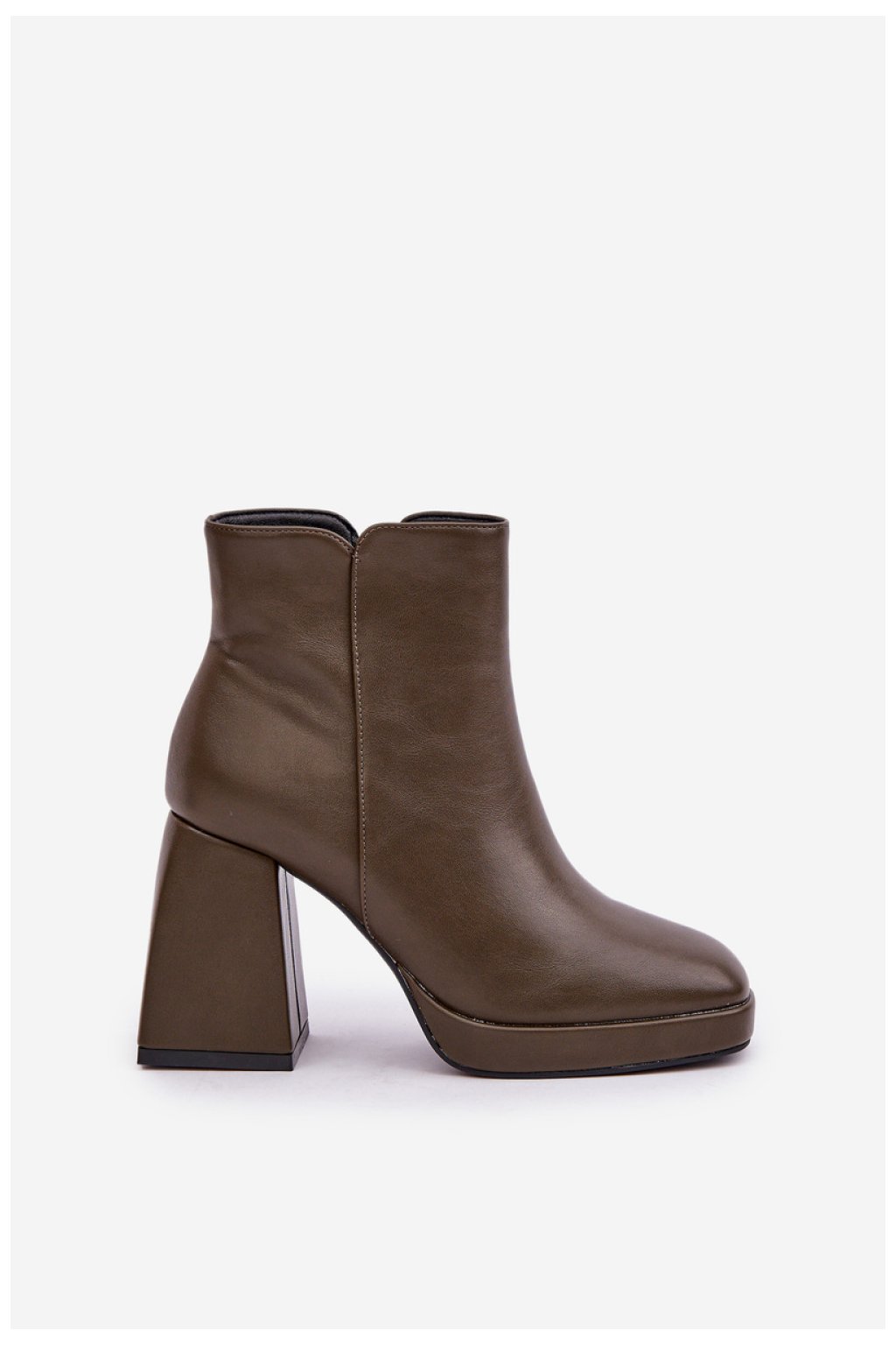 Dámské boty vyrobené z ekologické kůže, umístěné na stabilní sloupkovém podpatku. Zapínání na zip pro pohodlné použití. Vnitřek je vyztužen, což zajišťuje pohodlí a teplo v chladnějších dnech. Univerzální model, který skvěle padne do každodenních stylizací.