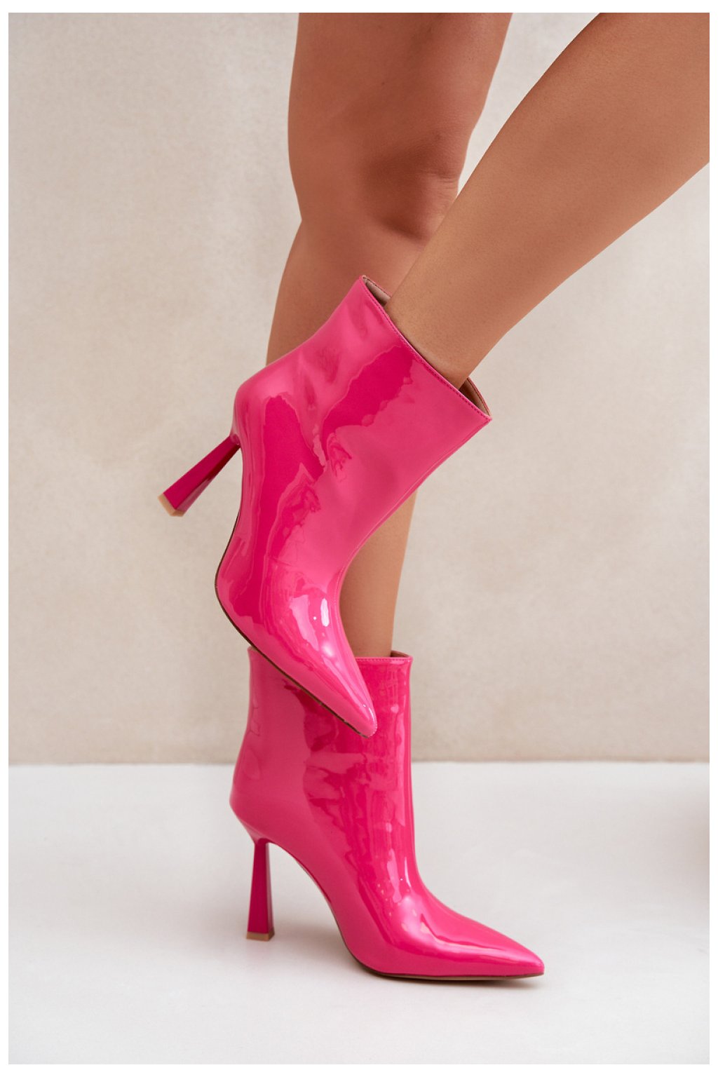 Lakové dámské boty na vysokém podpatku. Model s špičatými špičkami, který opticky zjemňuje nohu. Vyztužené koženým potahem, skvěle se hodí na chladnější dny. Ideální pro styling na speciální příležitosti.