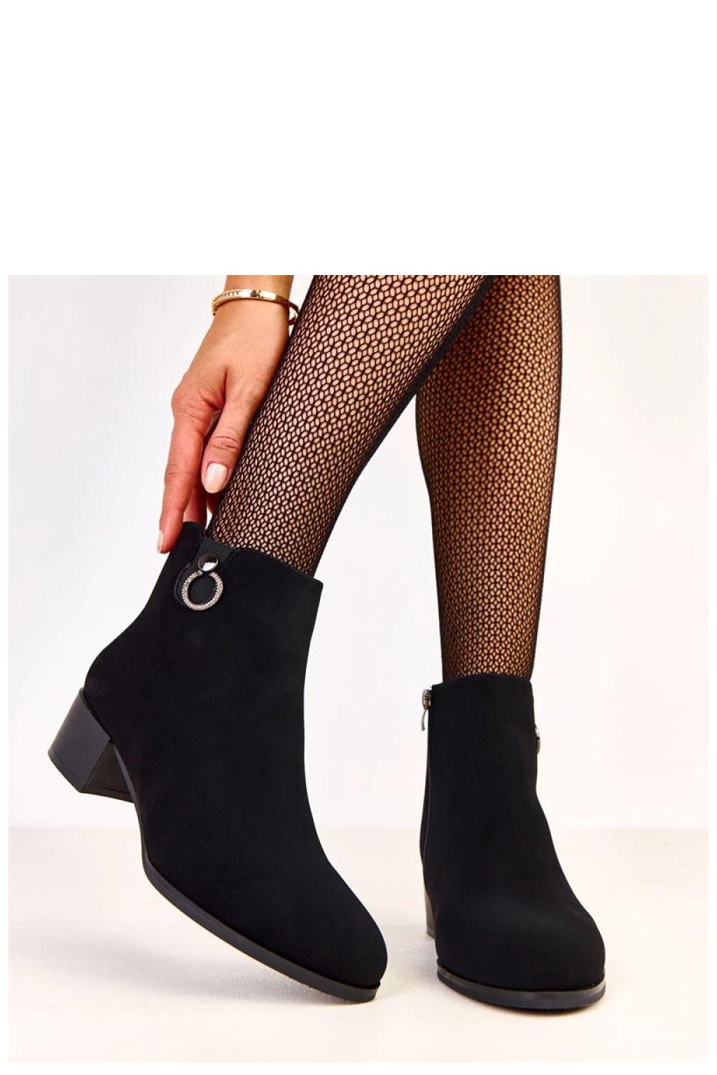 Botky s elegantní ozdobou jsou klasický a stylový model, který spojuje pohodlí nošení s módním akcentem. Vyrobené z ekologické semišové kůže, působí elegantně, a jemná ozdoba dodává botám výjimečný charakter. Model má kulatou špičku a je zateplený, co zajišťuje teplo a pohodlí v chladnějších dnech. Stabilní podpatek o výšce 5 cm pevně drží nohu, a 11 cm vysoký svršek (nad kotníkem) krásně zdůrazňuje nohu. Boty se zapínají na zip, co usnadňuje jejich obouvání. Vložka z látky zvyšuje pohodlí užívání.