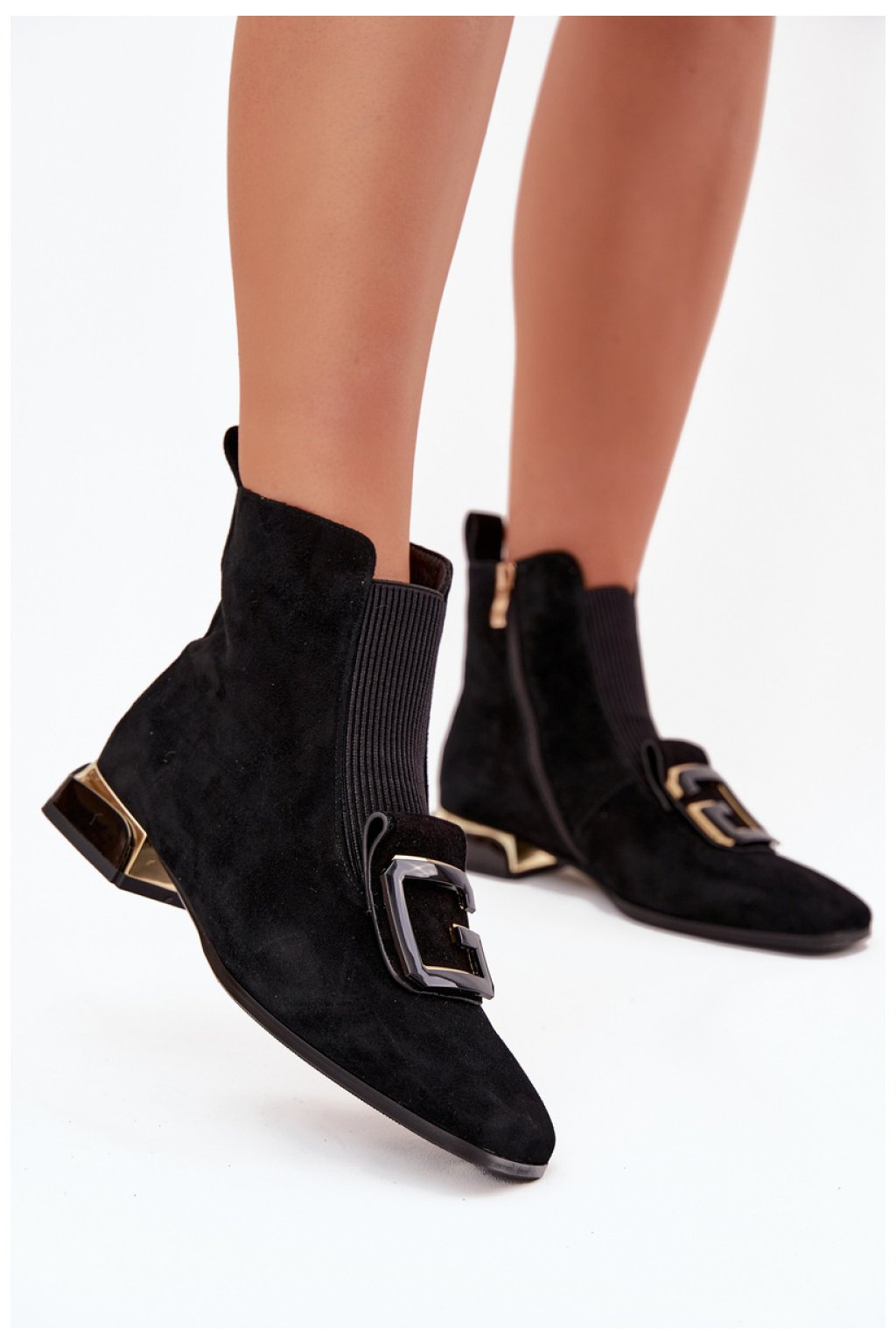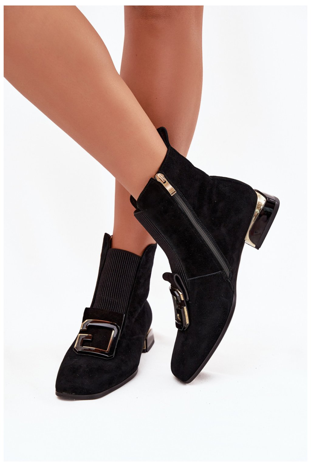 Elegantní dámské kotníčkové boty vyrobené z přírodního semiše jsou spojením elegance a pohodlí. Model na nízkém podpatku poskytuje pohodlí po celý den a jemné zateplení zase zajišťuje, že se budou skvěle hodit i do chladnějších dnů. Zip po straně usnadňuje obouvání, zatímco čtvercová špička dodává moderního charakteru. Pozornost přitahuje dekorativní detail vpředu, který zdůrazňuje elegantní vzhled bot. Jedná se o univerzální model, skvělý do kanceláře, na schůzky a také na večerní výlety, kdy chcete vypadat elegantně a cítit se pohodlně.