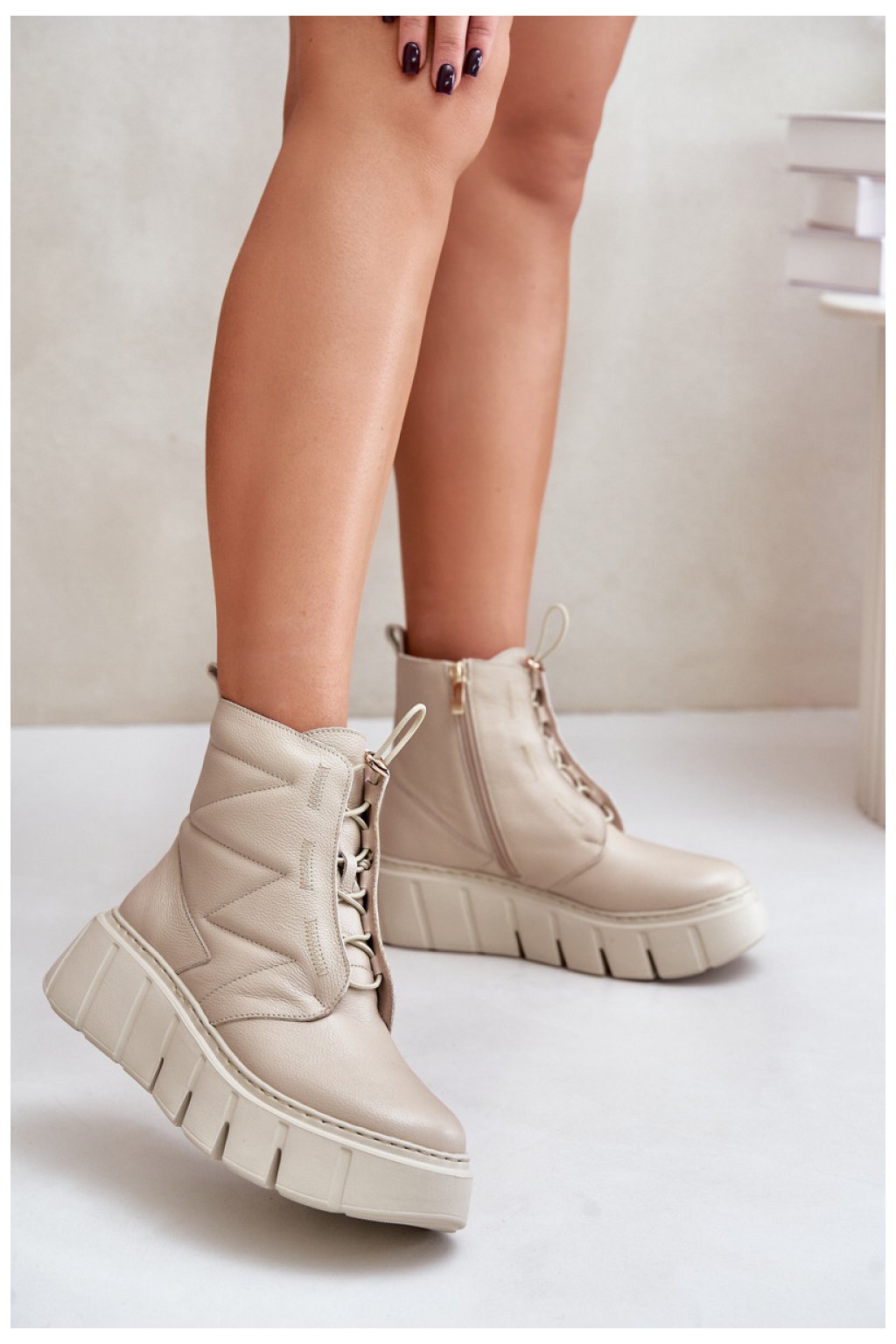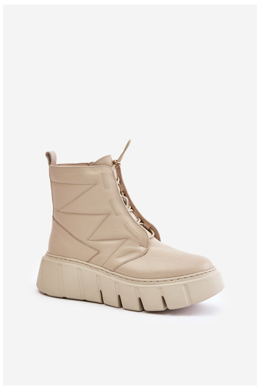 Dámské kozačky z přírodní kůže na platformě a podpatku jsou ideální volbou pro chladnější dny. Zateplené plstí poskytují teplo a pohodlí při nošení. Model se zapíná na zip, což usnadňuje obouvání, a díky elegantnímu designu se kozačky hodí jak ke každodennímu, tak i ke stylovějšímu oblečení.