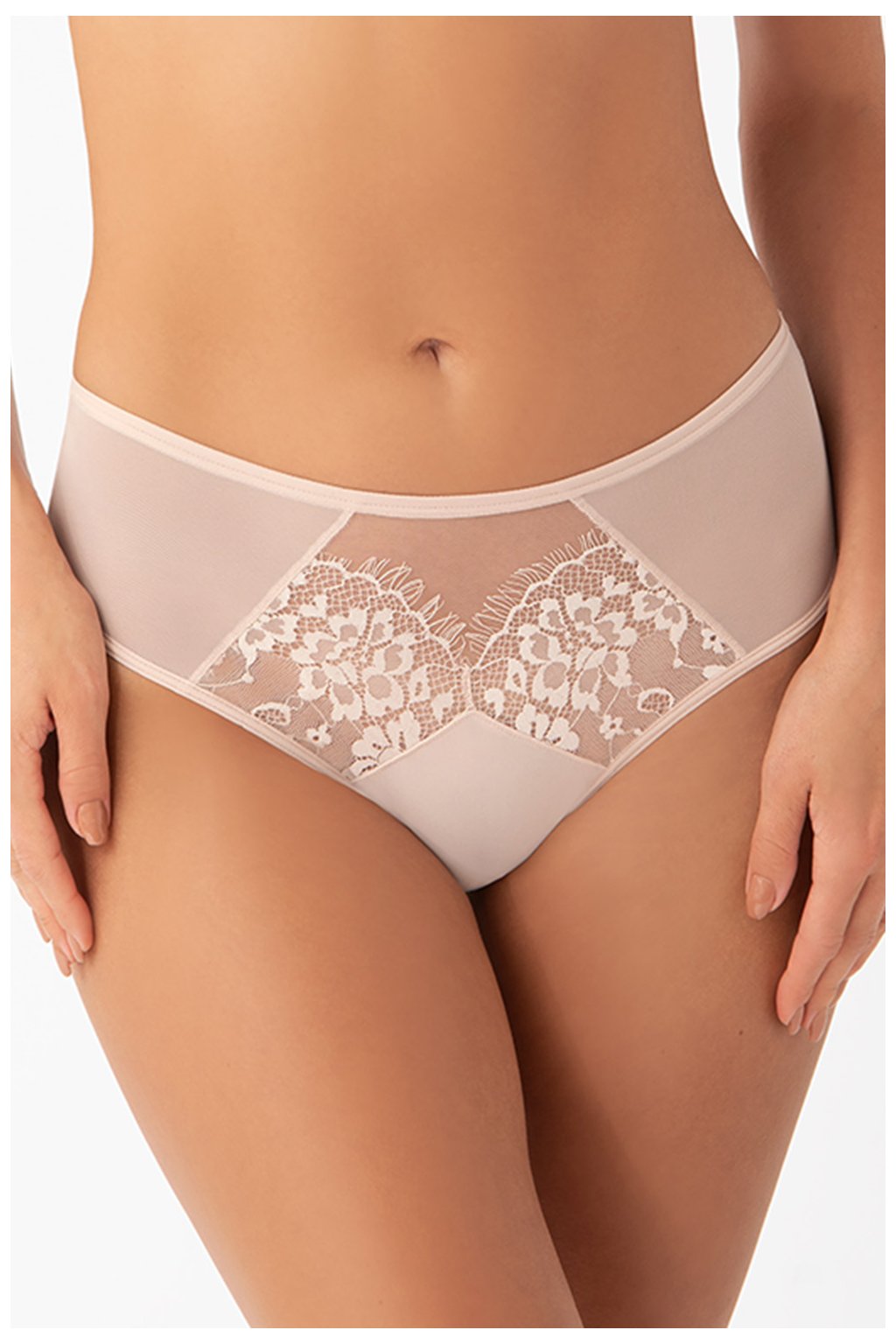 Smyslné, velmi elegantní podprsenky, které vám umožní vypadat krásně žensky a zároveň naprosto pohodlně. Přední část je vyrobena z kombinace jemného tylu, elastického úpletu a neuvěřitelně krásné květinové krajky, která zdobí přední část prádla v podobě ozdoby. Zadní část elegantně zvýrazňuje hýždě.