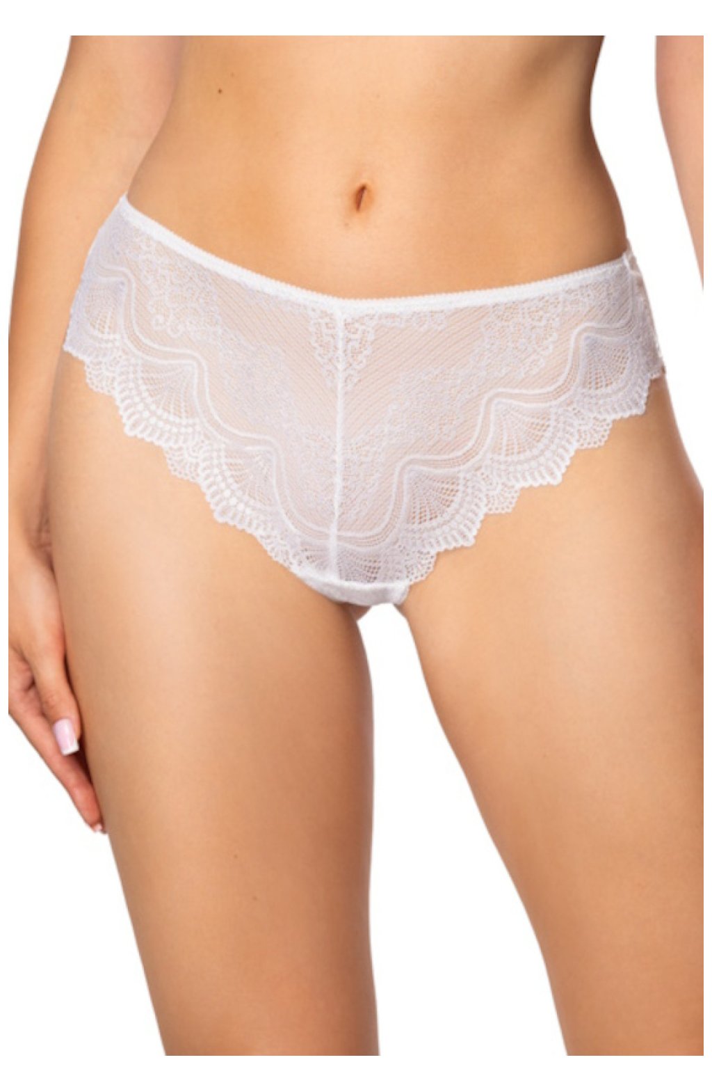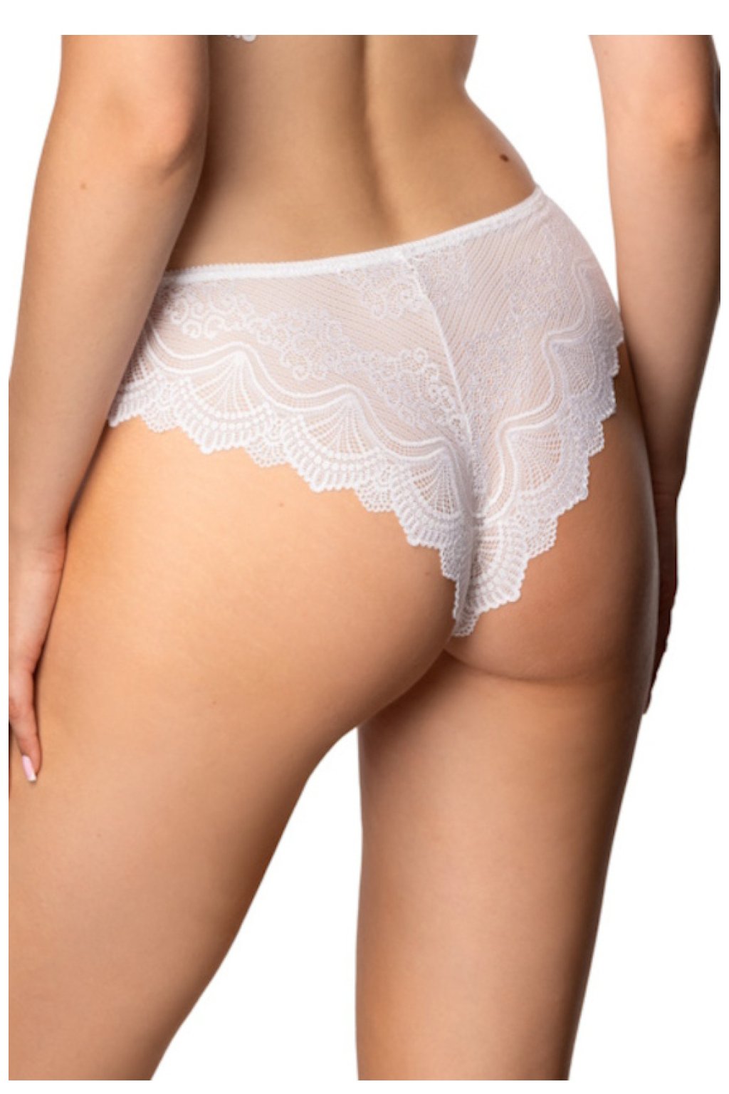 Jemné brazilky Ayrin v odstínu off white jsou spojením smyslného designu a pohodlí. Vyrobené z vysoce kvalitní krajky s jemnými vzory dokonale padnou k postavě a poskytují pohodlí po celý den. Charakteristické vlnité lemy zdůrazňují ženské tvary, dodávají prádlu zvláštní kouzlo. Přední strana zdobená jemnými detaily a zadní strana jemně odhaluje linii hýždí, díky čemuž jsou brazilky Ayrin skvělou volbou jak na každý den, tak na speciální příležitosti. Investujte do prádla, které spojuje styl s pohodlím - brazilky Ayrin jsou ideální volbou pro každou ženu, která si cení nadčasové elegance!
