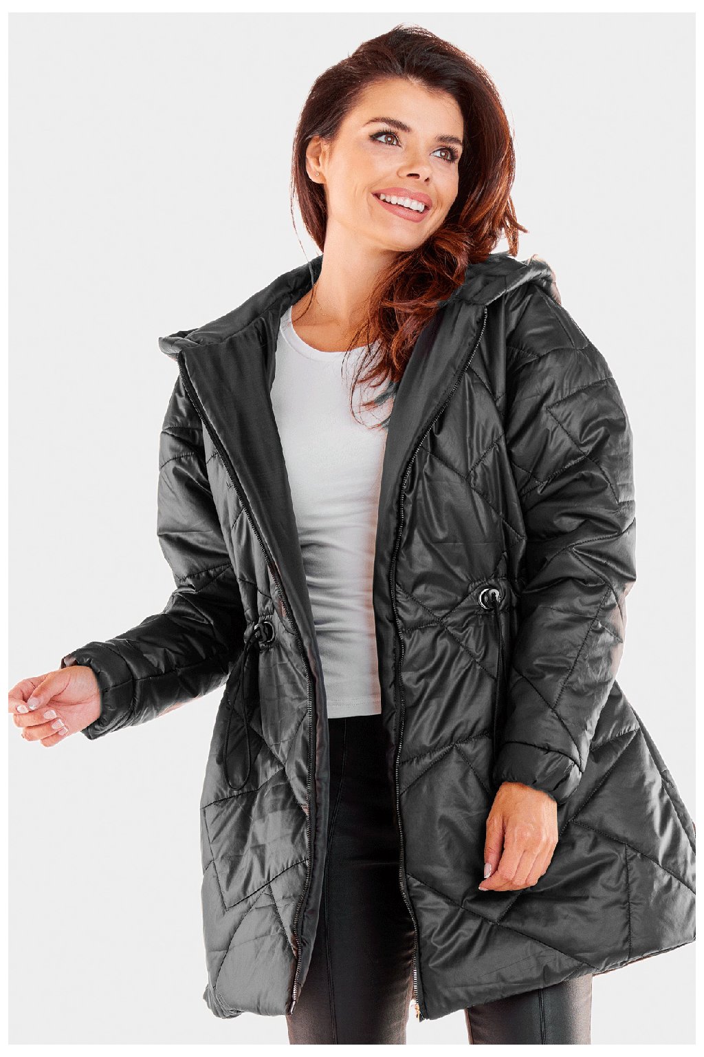Prošívaná bunda s kapucí, zapínání na zip. Ve spodní části rozšířené, v pase nastavitelné. Plně podšité. Skvěle se hodí jako větruodolná bunda.