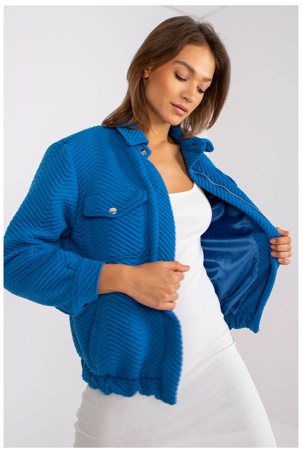 Tato tmavě modrá prošívaná přechodová bunda vyrobená z vysoce kvalitního 100% polyesteru je ideální pro ležérní nebo městský styl. Rovný střih a provedení bez kapes jí dodávají na charakteru. Lze ji nosit každý den, do práce i na procházku. Pohodlná a hřejivá nabídka.