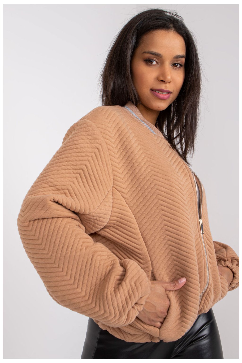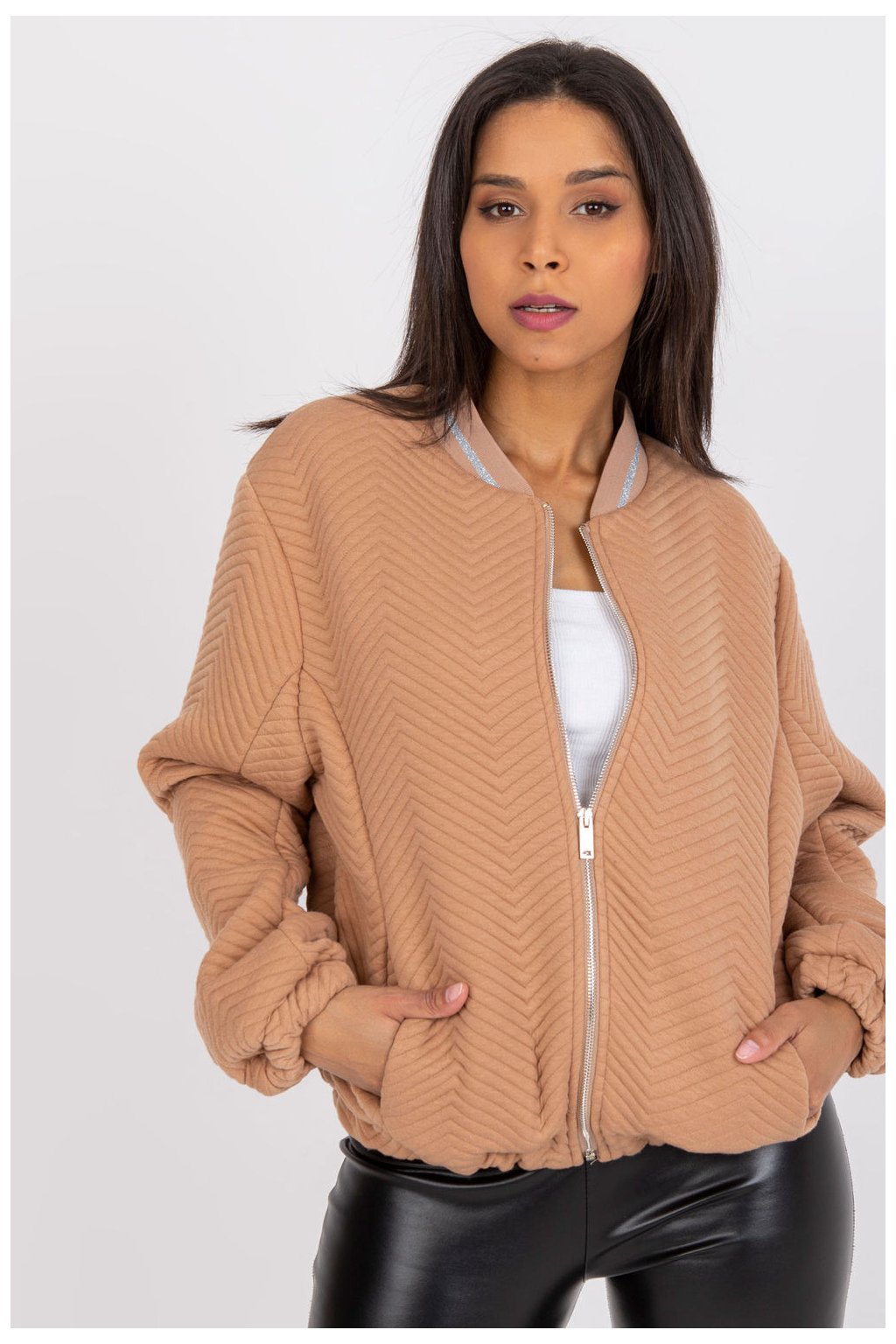 Dámská bunda s podšívkou ve velbloudí barvě je ideální volbou pro chladné dny. Je vyrobena z odolného materiálu ze 100% polyesteru. Model má kapsy, elastickou spodní část a žebrované manžety, které vám poskytnou spoustu možností stylingu. Multifunkční model, který se bude skvěle hodit pro ležérní městský styl ke každodennímu oblečení.